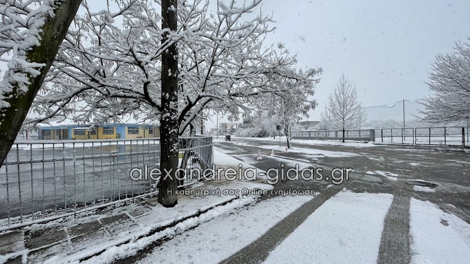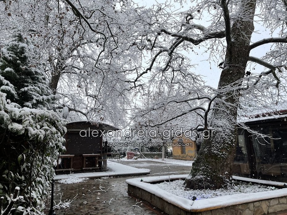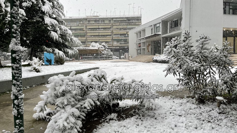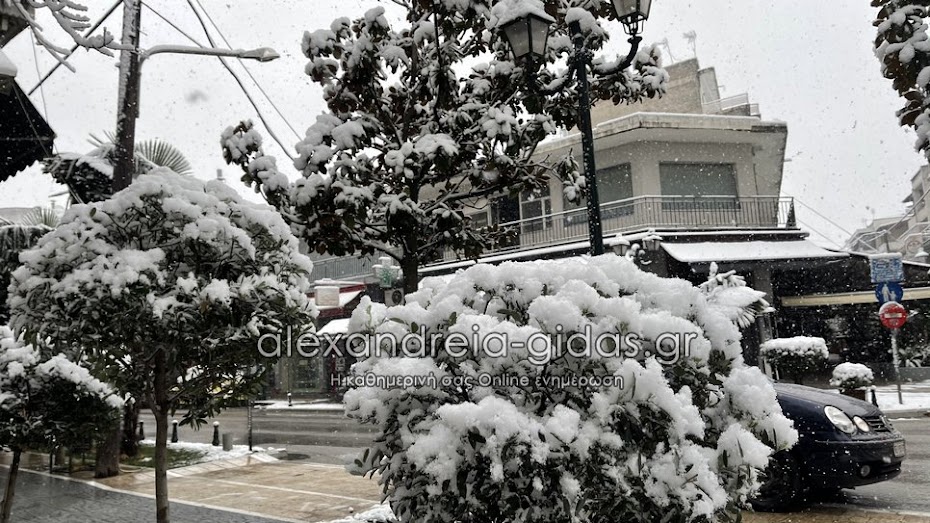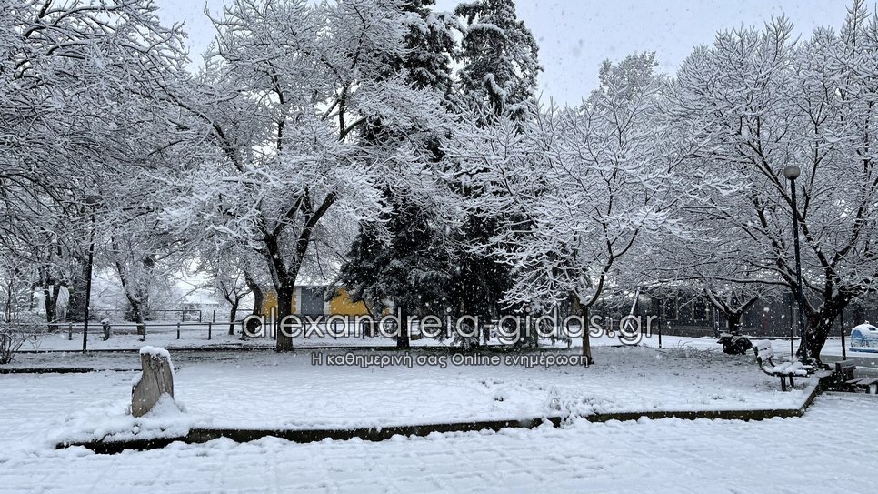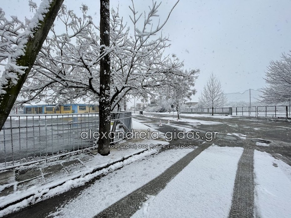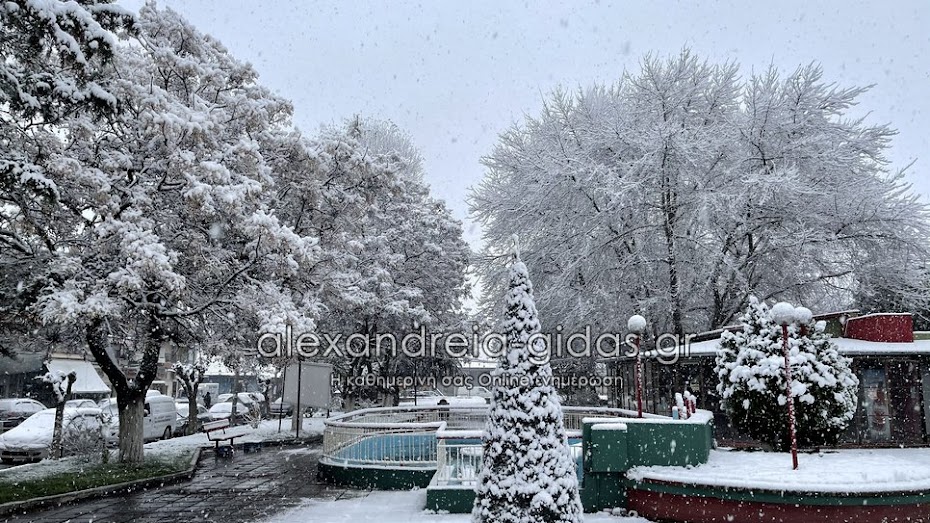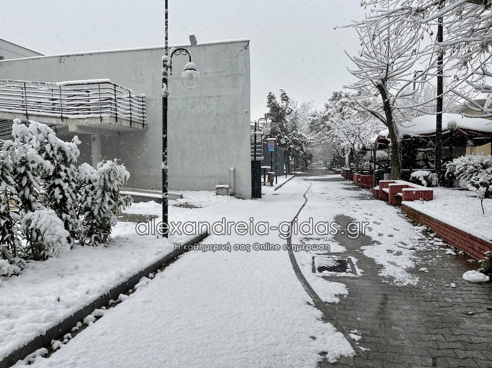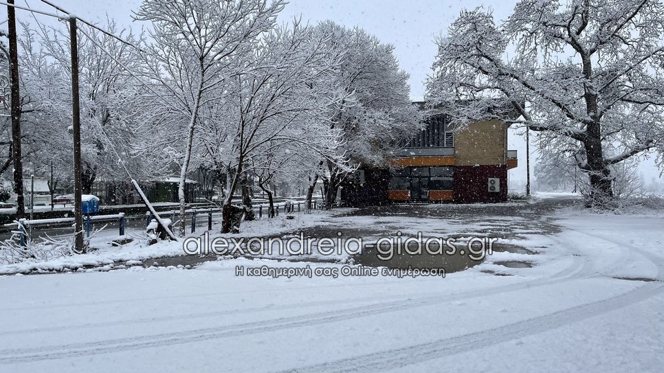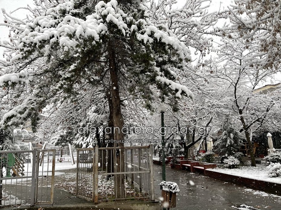 Λευκό ξύπνημα το πρωί του Σαββάτου 16 Ιανουαρίου 2021 και για την πόλη της Αλεξάνδρειας.