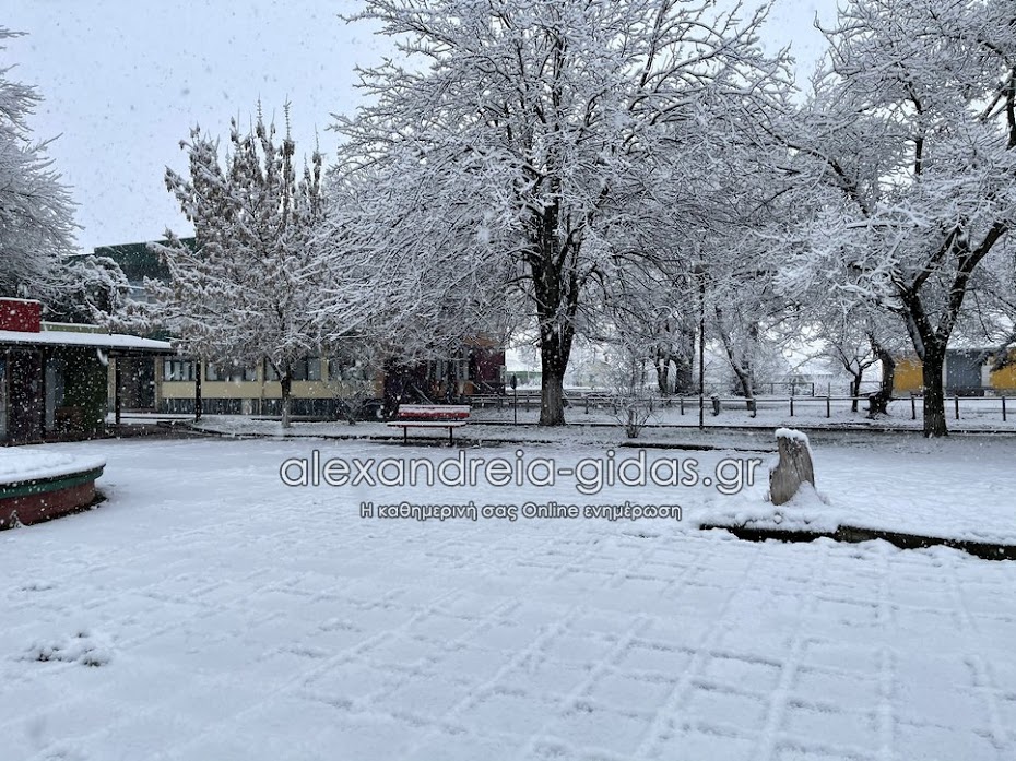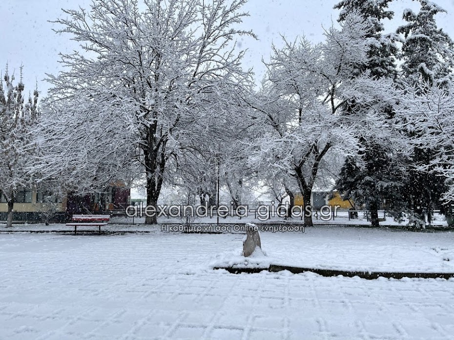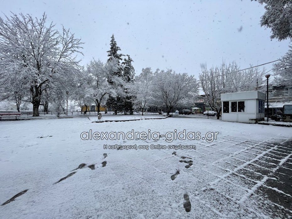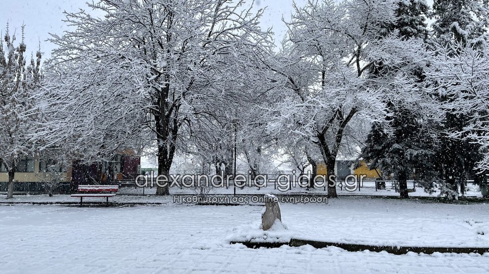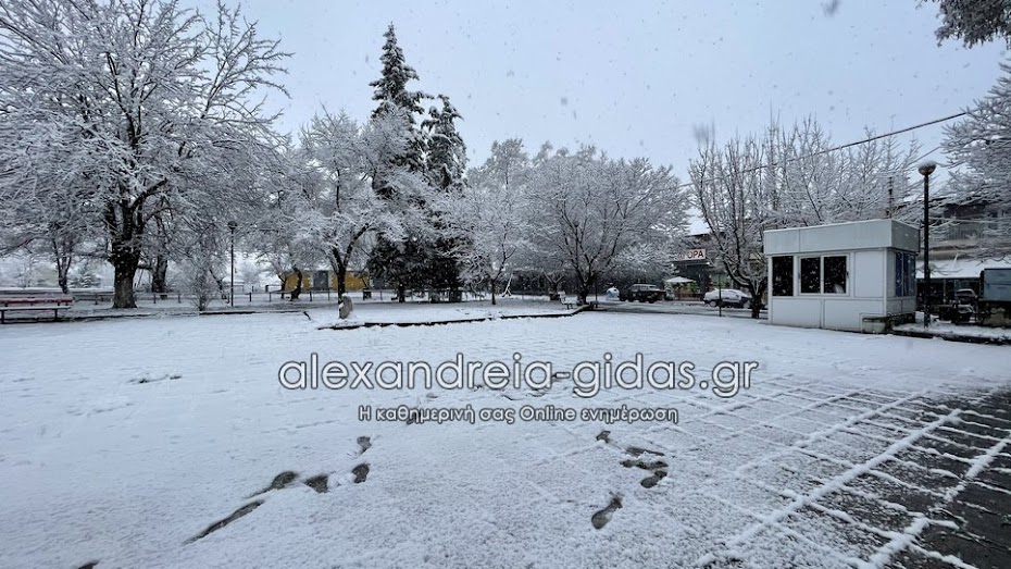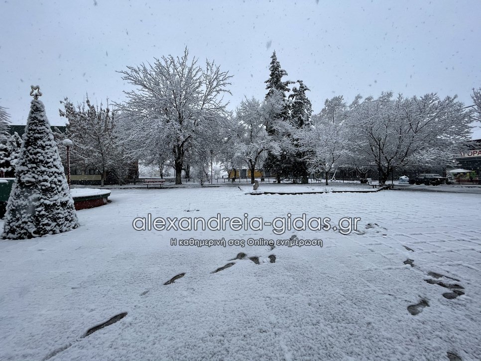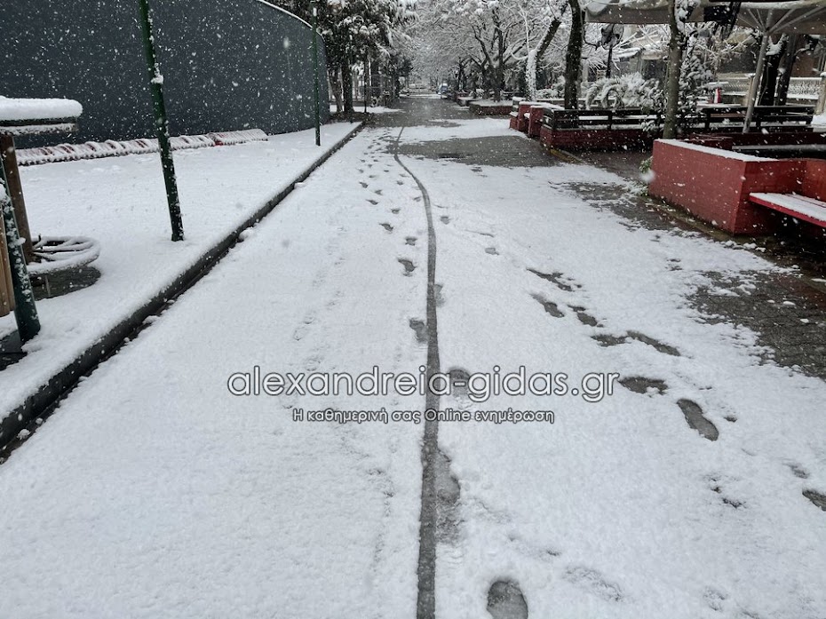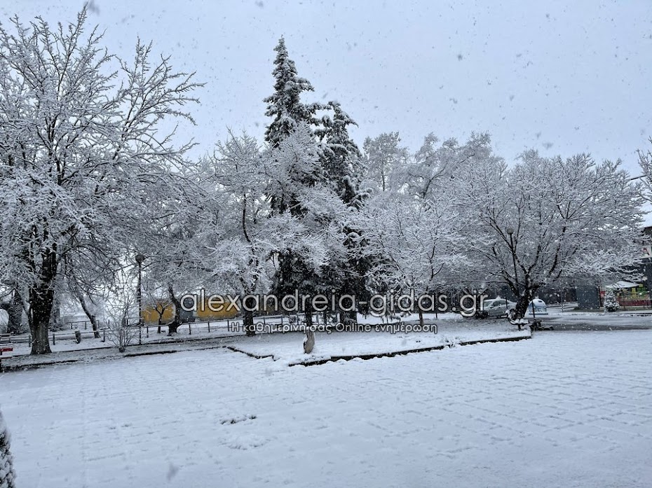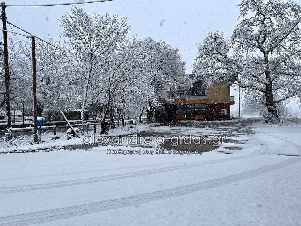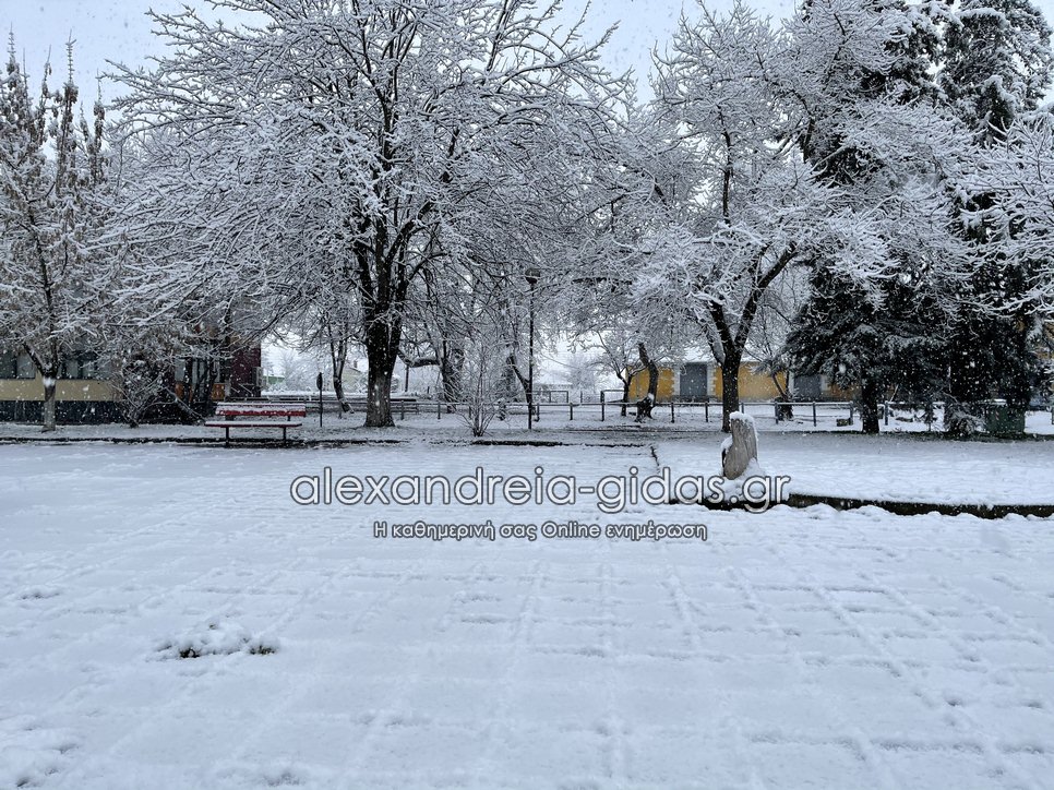 Λευκό ξύπνημα το πρωί του Σαββάτου 16 Ιανουαρίου 2021 και για την πόλη της Αλεξάνδρειας.