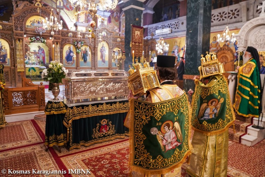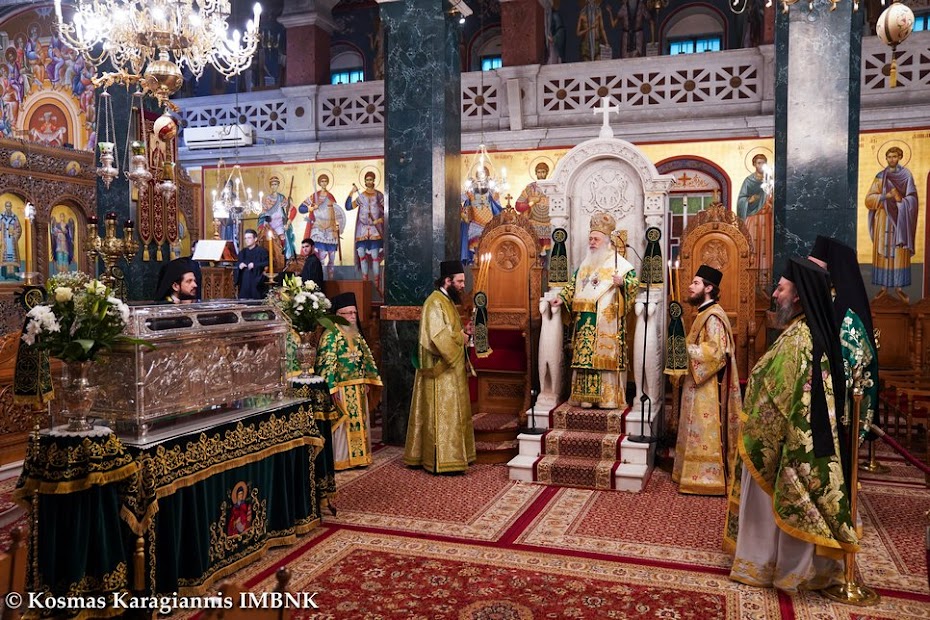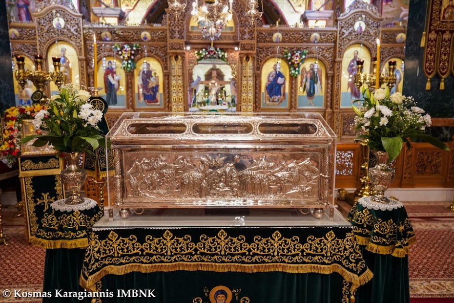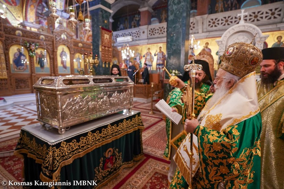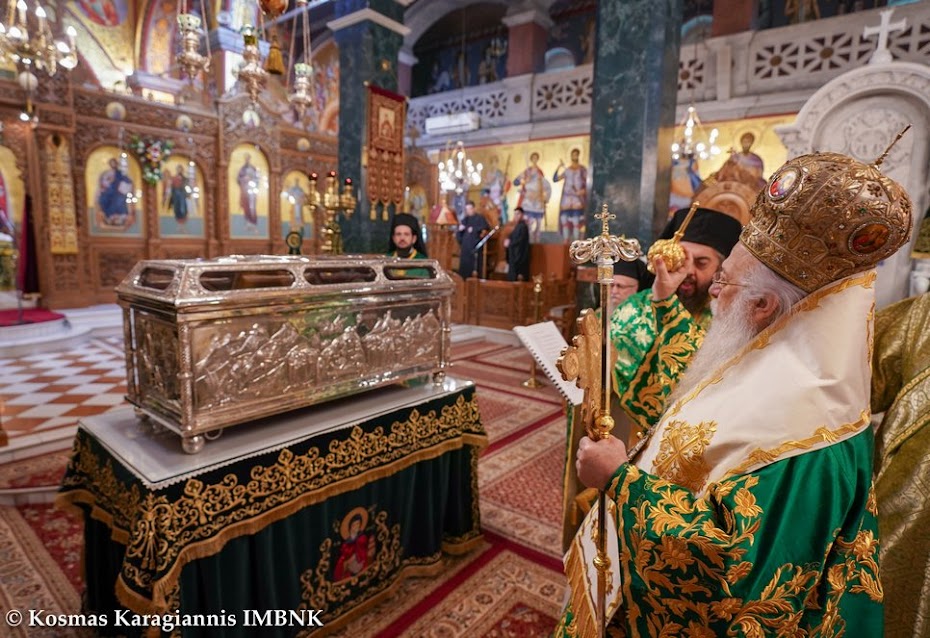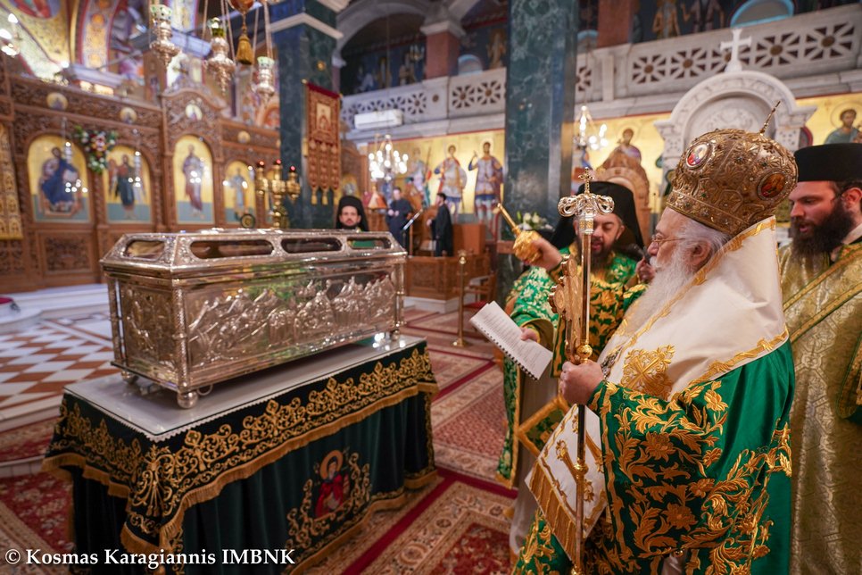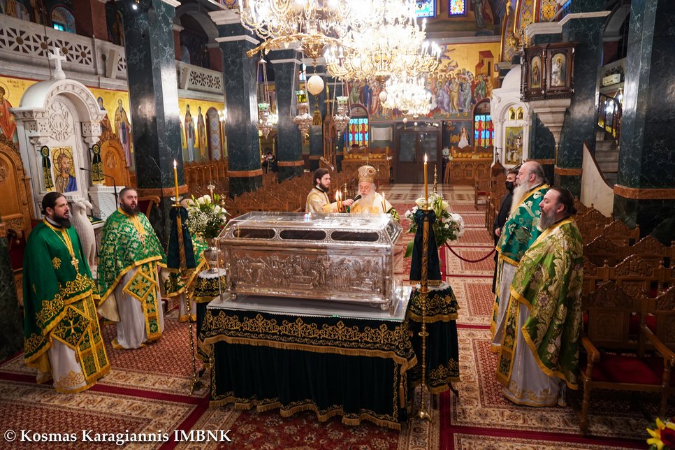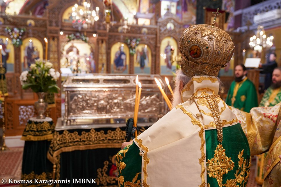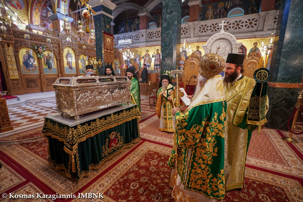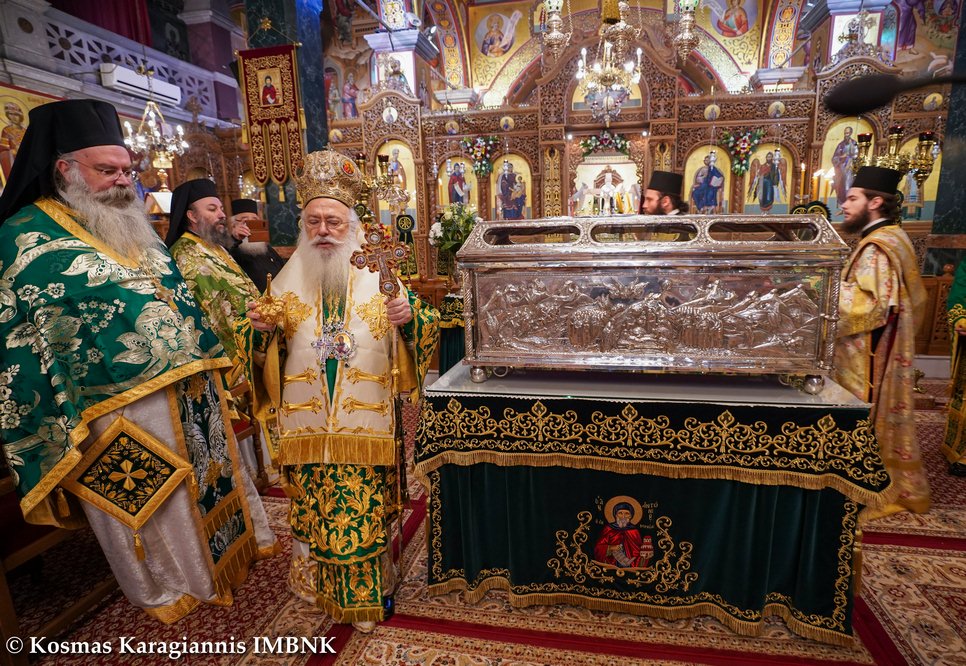 Καί ἐκεῖνος πού ξέρει τήν ἀγάπη καί τόν σεβασμό μας καί θά δεῖ τήν θέλησή μας νά τόν τιμήσουμε ἀκο­λουθώντας τό παράδειγμά του, καί θά πρεσβεύει γιά μᾶς στόν Θεό καί θά ἐπιδαψιλεύει τή χάρη καί τήν εὐλογία του στή ζωή μας καί στήν πόλη μας.