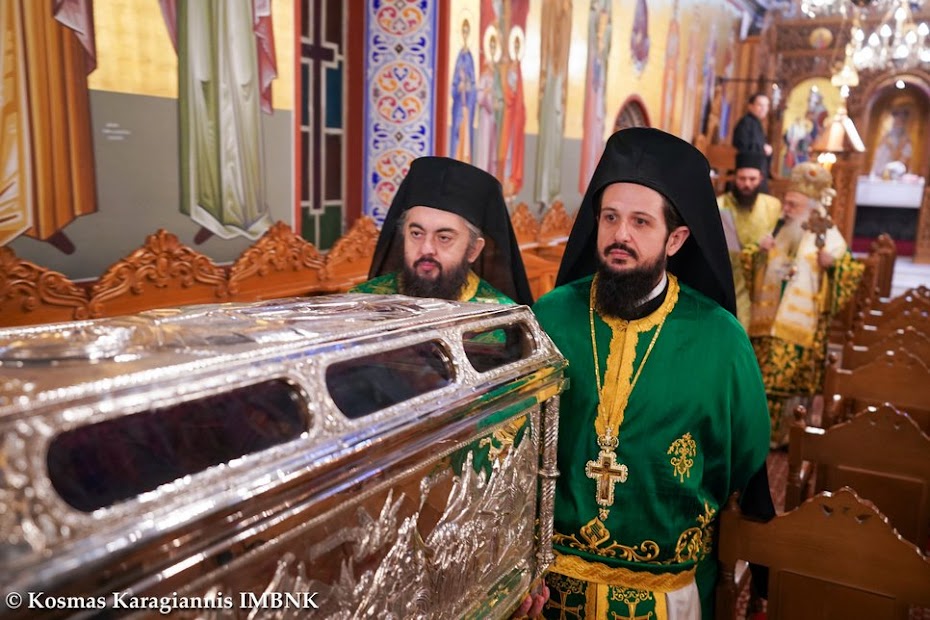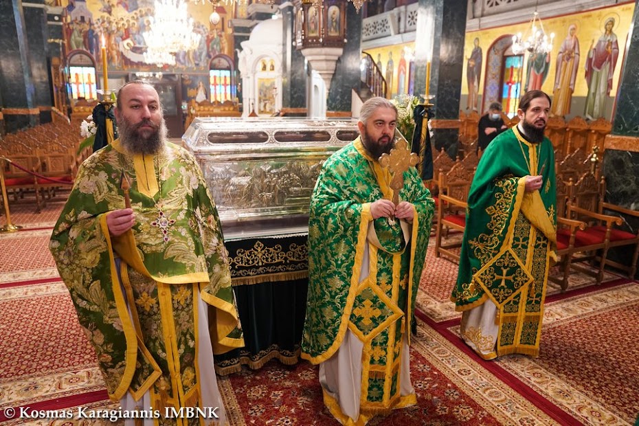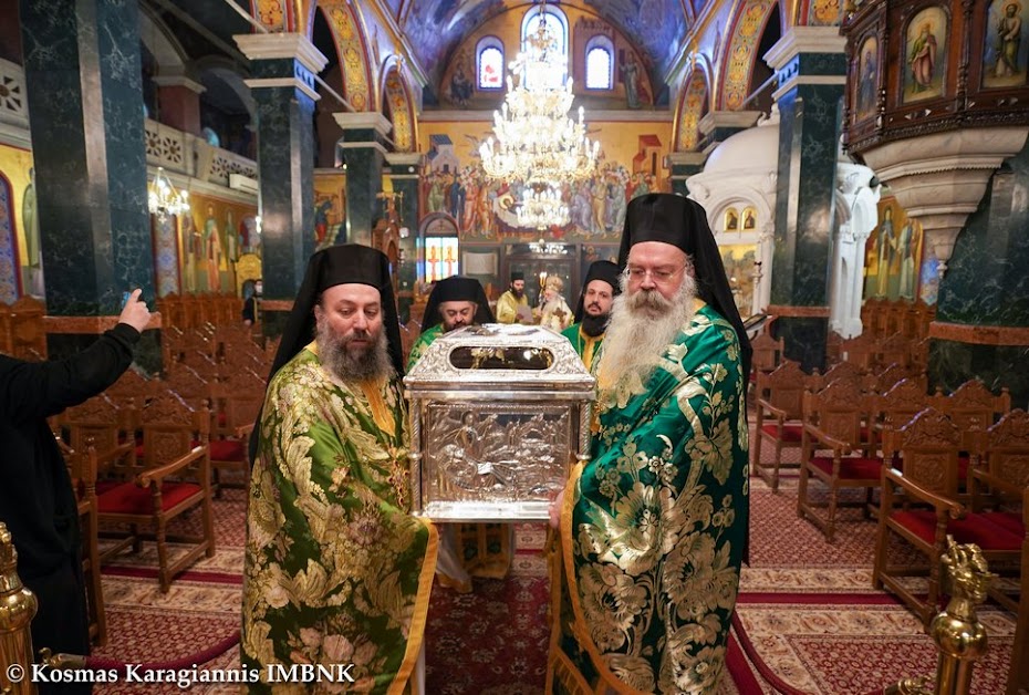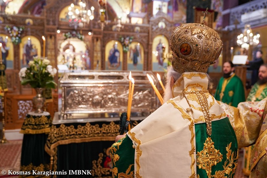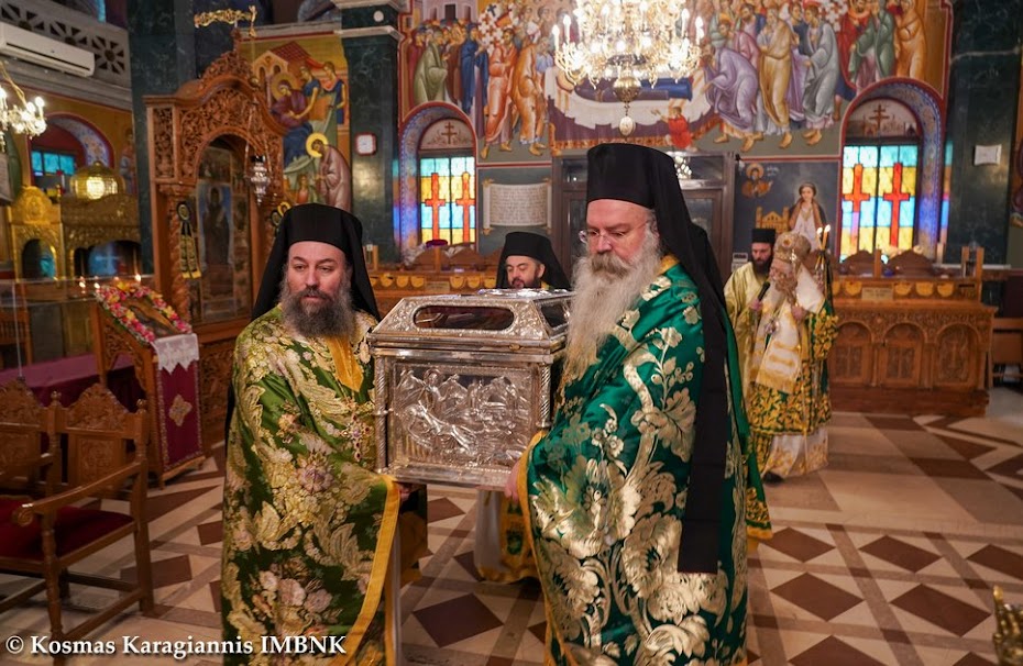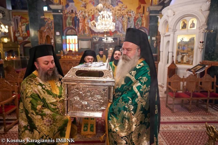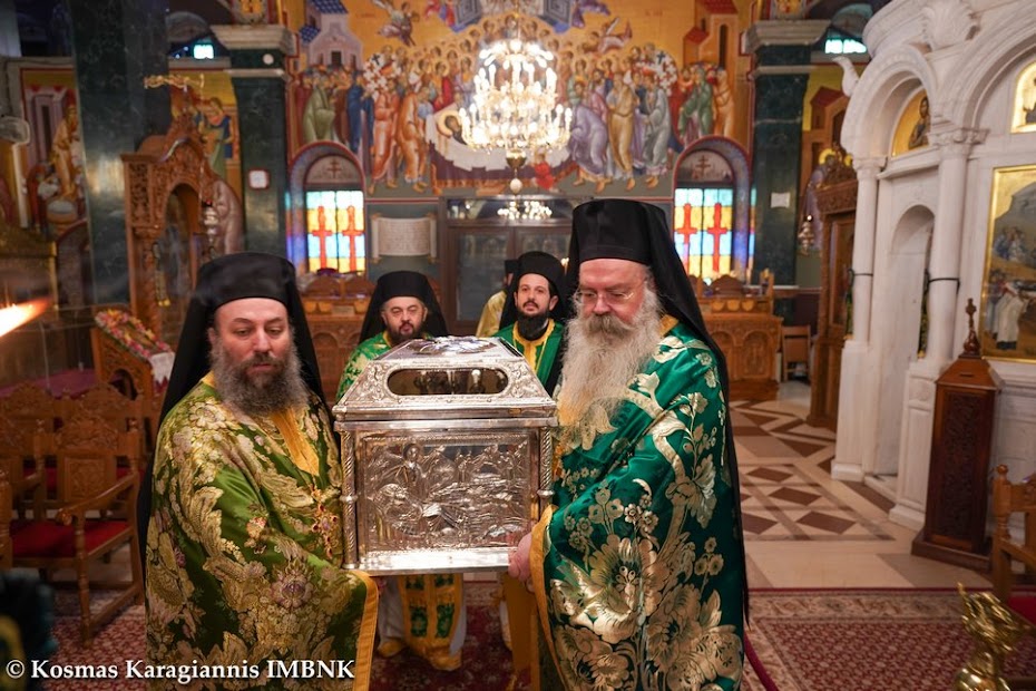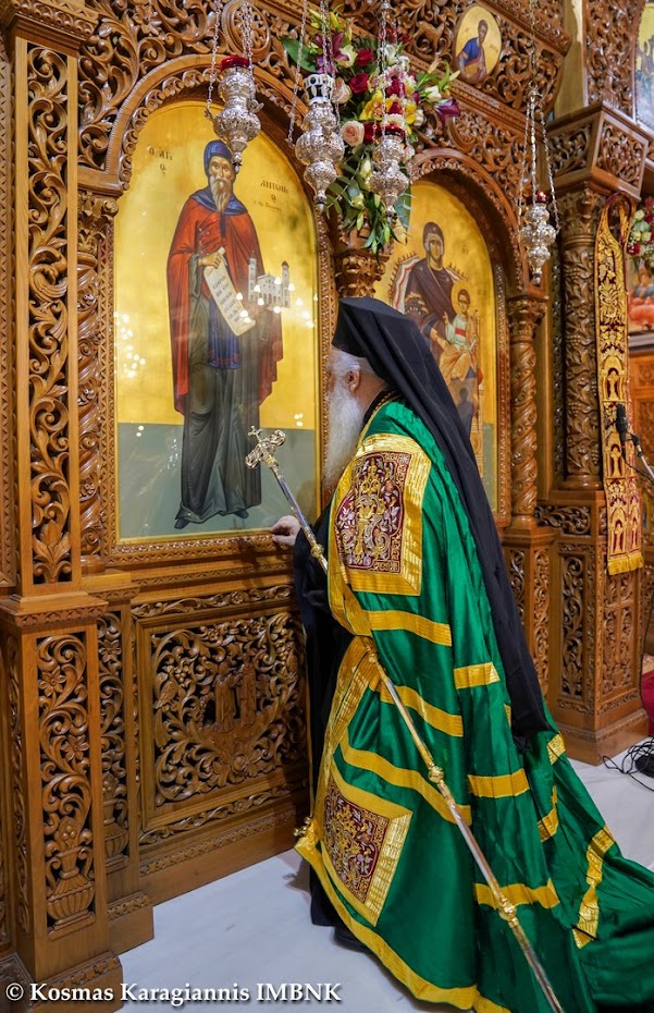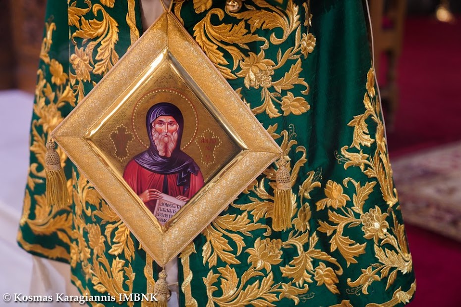 Μετά τη θεία Λειτουργία εψάλησαν τα εγκώμια του Οσίου Αντωνίου και ακολούθησε λιτανεία του ιερού λειψάνου του Οσίου εντός του Ιερού Ναού.