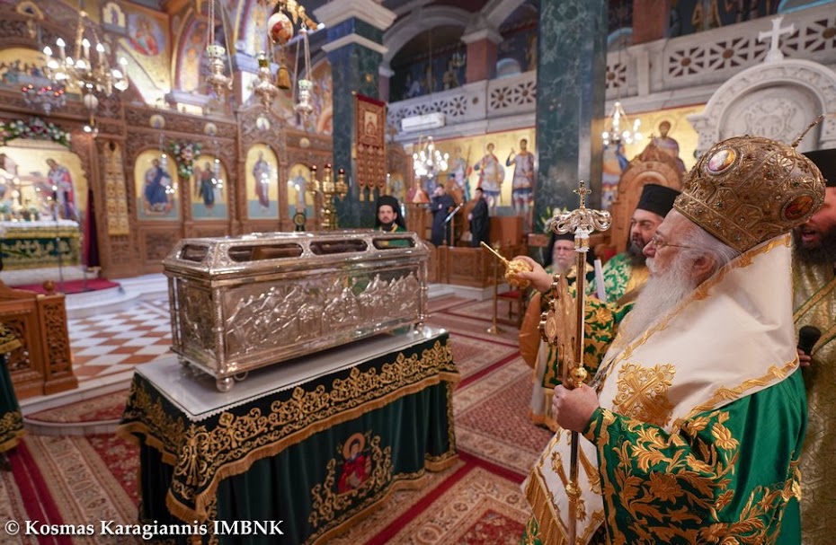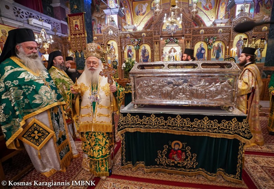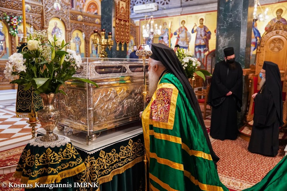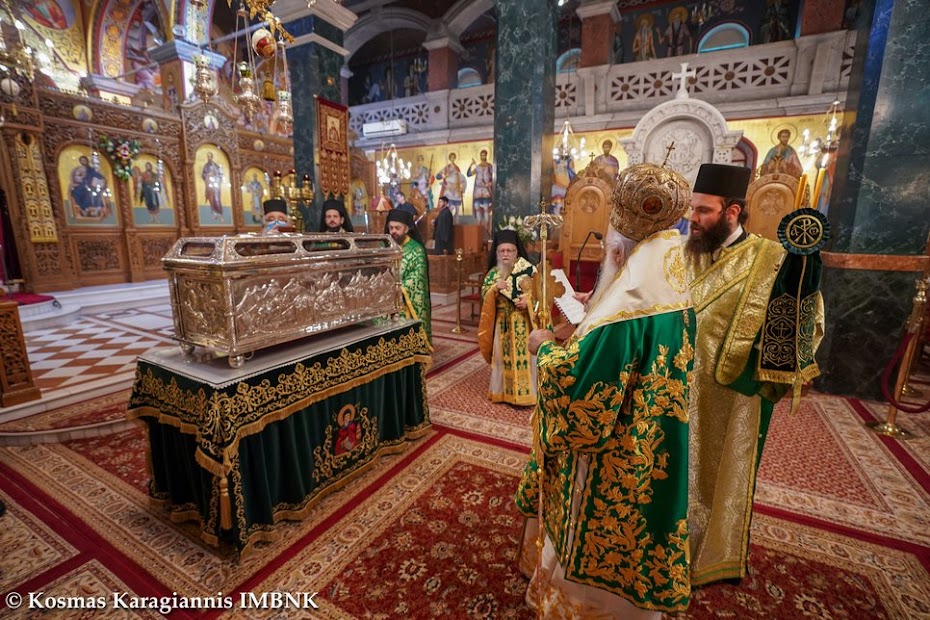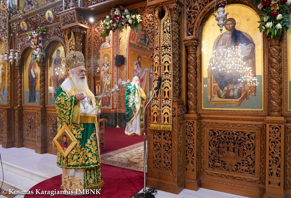 Τόν τιμοῦμε καί τοῦ ἐκφράζουμε τήν εὐγνωμοσύνη μας, γιατί κατά τή διάρκεια ὅλων αὐτῶν τῶν μηνῶν τῆς πανδημίας φύλαξε καί προστά­τευ­σε τήν πόλη μας ἀπό με­γαλύτερα δεινά καί ἀπό περισ­σό­τερη ὀδύνη καί μᾶς ἀξίωσε νά τόν τιμήσουμε καί σήμερα, τηρώντας τά ὑγειονομικά μέτρα γιά τήν ἀπο­φυγή τῆς δια­σπο­ρᾶς τοῦ κορω­νοϊοῦ καί τῶν συνε­πειῶν της.