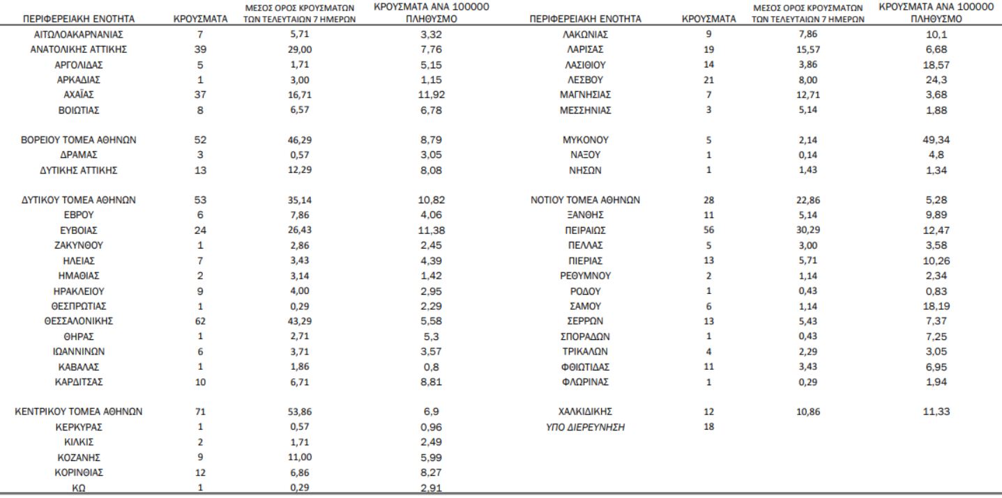 Ο συνολικός αριθμός των κρουσμάτων ανέρχεται στα 154796, εκ των οποίων 52.1% άνδρες.