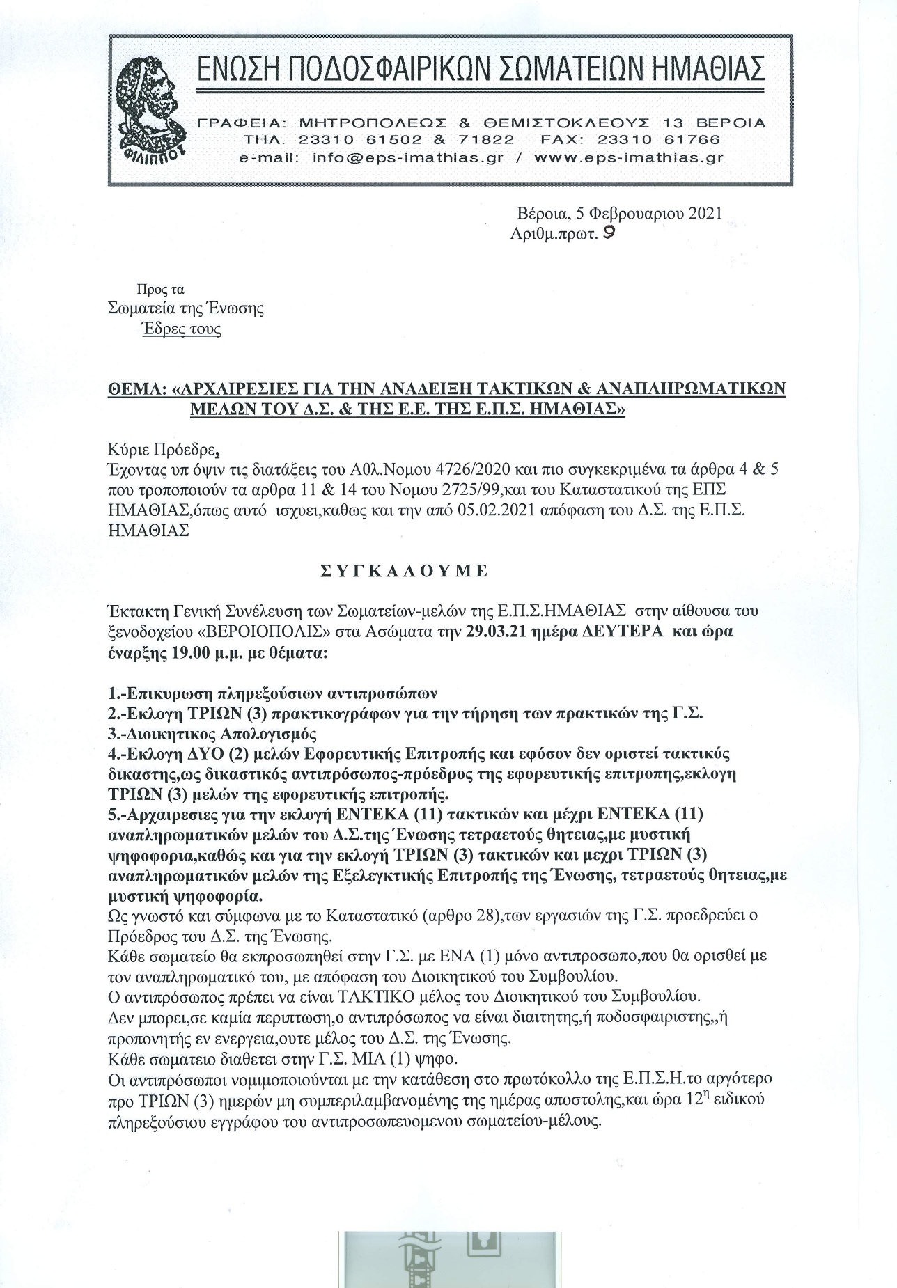 Συνεδρίασε με τηλεδιάσκεψη το Δ.Σ. της ΕΠΣ Ημαθίας.