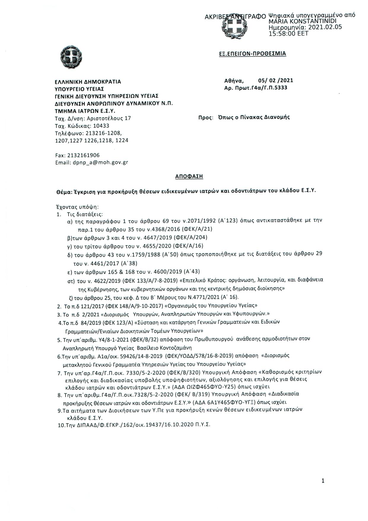 Προχωράμε με σταθερά βήματα επιλύοντας χρόνιες αδυναμίες και ελλείψεις, με γνώμονα τη διαρκή βελτίωση των υπηρεσιών υγείας προς όφελος του πολίτη.