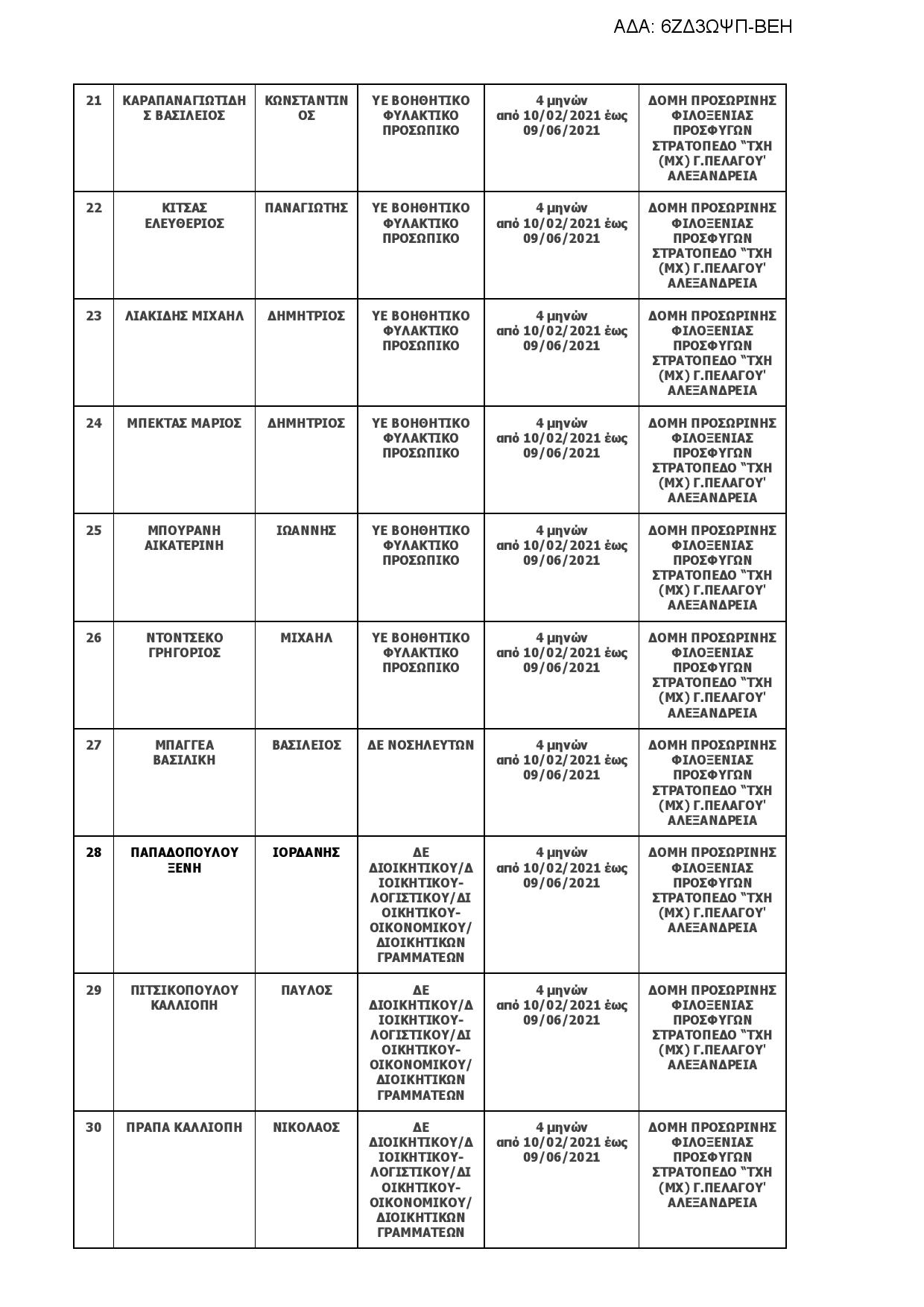 Στα πλαίσια της τοποθέτησης προσωπικού Πράξης «Προώθηση της απασχόλησης μέσω Προγραμμάτων Κοινωφελούς Χαρακτήρα σε Κέντρα Υποδοχής και ταυτοποίησης ΤΟΣΚΕΔΠ και Δομές προσωρινής υποδοχής ή φιλοξενίας μέσω Δήμων, Περιφερειών και της υπηρεσίας υποδοχής και ταυτοποίησης του Υπουργείου Μεταναστευτικής Πολιτικής -Γ΄Κύκλος για 2082 θέσεις πλήρους απασχόλησης», (Τροποποίηση της υπ΄αριθ 8.8766/24-09-2018 (Β’ 4221)ΚΥΑ με θέμα: Προώθηση της απασχόλησης μέσω προγραμμάτων κοινωφελούς χαρακτήρα στο Πλαίσιο των ΕΣΠΑ 2014-2020, όπως έχει τροποποιηθεί και ισχύει-4 -μηνη επέκταση(ΦΕΚ 5584/18-12-2020, τεύχος Β΄).