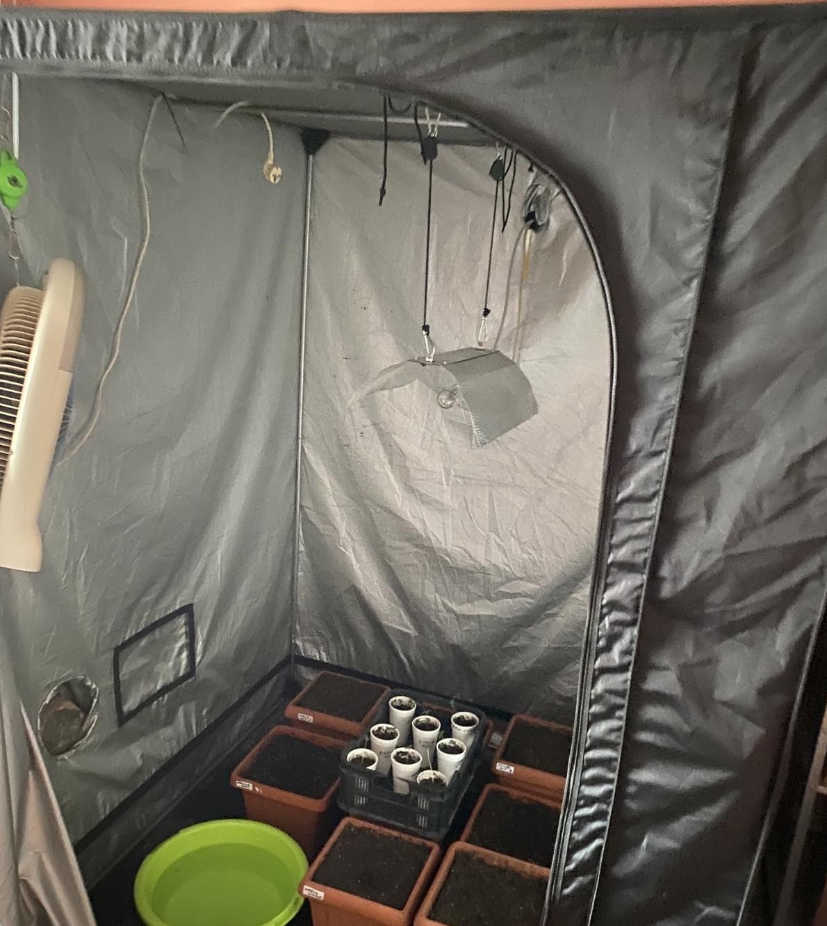 Σε έρευνα που έγινε στο σπίτι του διαπιστώθηκε να καλλιεργεί 8 δενδρύλλια κάνναβης μέσα ντουλάπα, όπου είχε εγκαταστήσει ειδικό σύστημα καλλιέργειας (λάμπα, σύστημα εξαερισμού, θερμόμετρο κ.α.), τα οποία και κατασχέθηκαν.