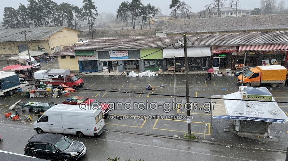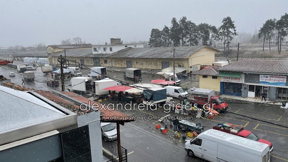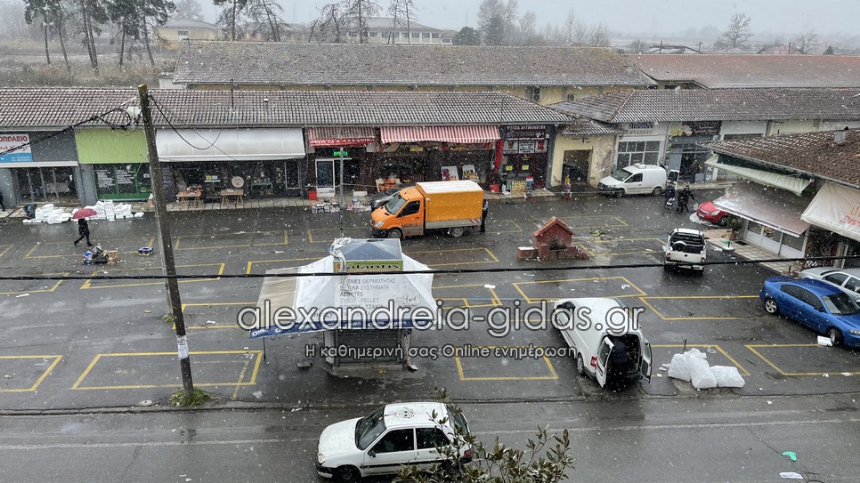 Το χιόνι και ο παγωμένος αέρας από το πρωί του Σαββάτου οδήγησαν στο να τελειώσει νωρίτερα σήμερα η λαϊκή αγορά της Αλεξάνδρειας.