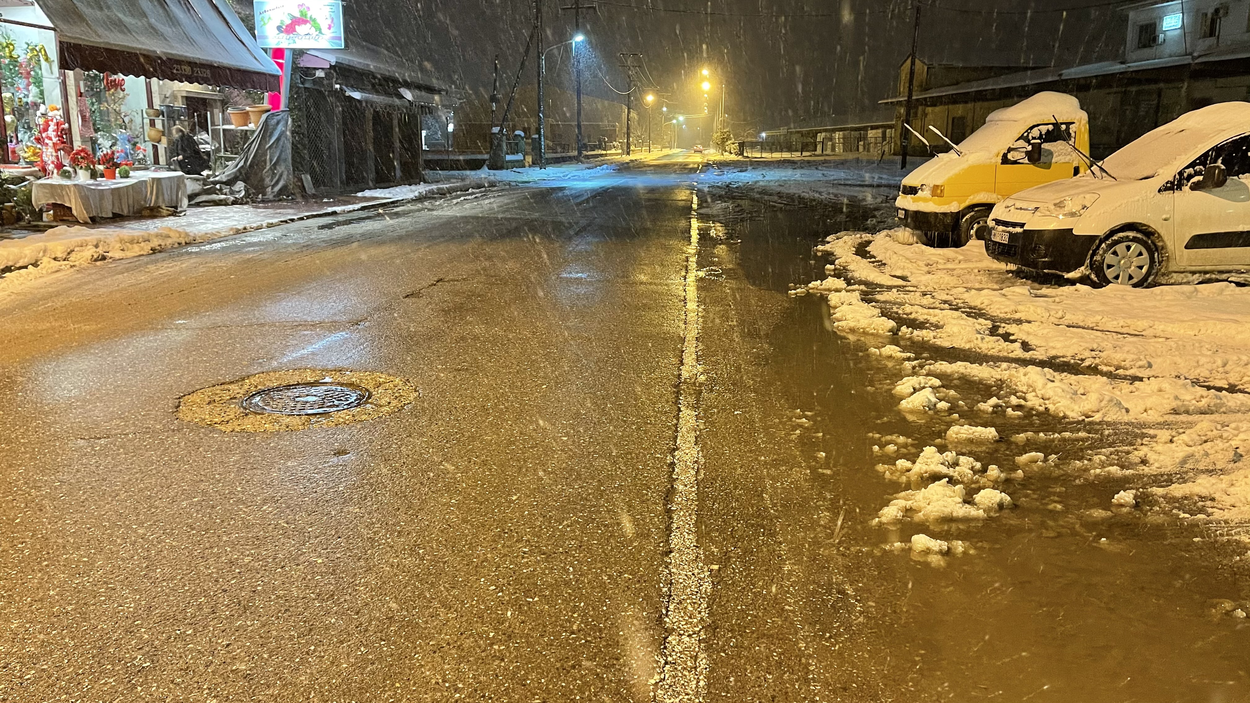 Όπως ενημερωθήκαμε οι κεντρικοί άξονες είναι καθαροί, μέχρι αργά το βράδυ μηχανήματα του δήμου έριχναν αλάτι μέσα στην πόλη αλλά και στα χωριά για να αποφευχθεί η παγωνιά αύριο.