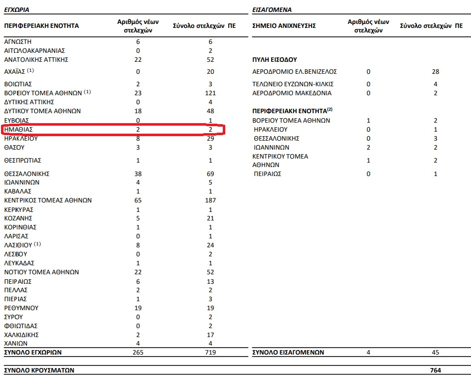 Στη λίστα των κρουσμάτων από τα δείγματα στο διάστημα από 7 Ιανουαρίου 2021 έως 9 Φεβρουαρίου 2021, στον νομό Ημαθίας βρέθηκαν δύο κρούσματα της βρετανικής μετάλλαξης.