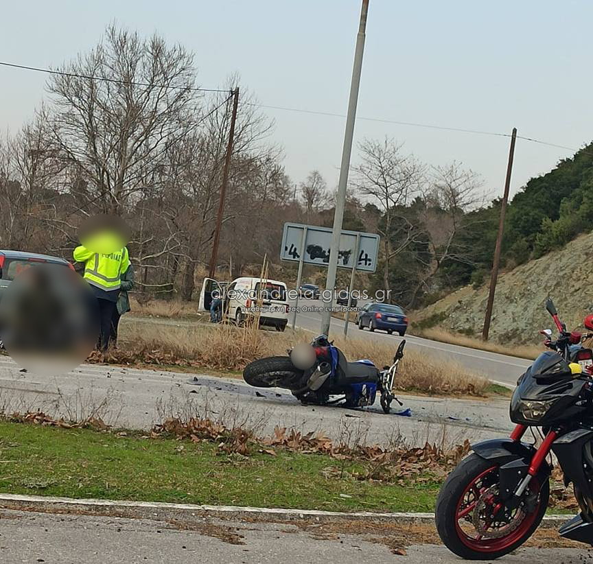 Τροχαίο ατύχημα μεταξύ ενός αυτοκινήτου και μιας μηχανής σημειώθηκε το μεσημέρι της Κυριακής 28 Φεβρουαρίου 2021 στον επαρχιακό δρόμο Βέροιας – Σφηκιάς, στο ύψος του υδροηλεκτρικού εργοστασίου.