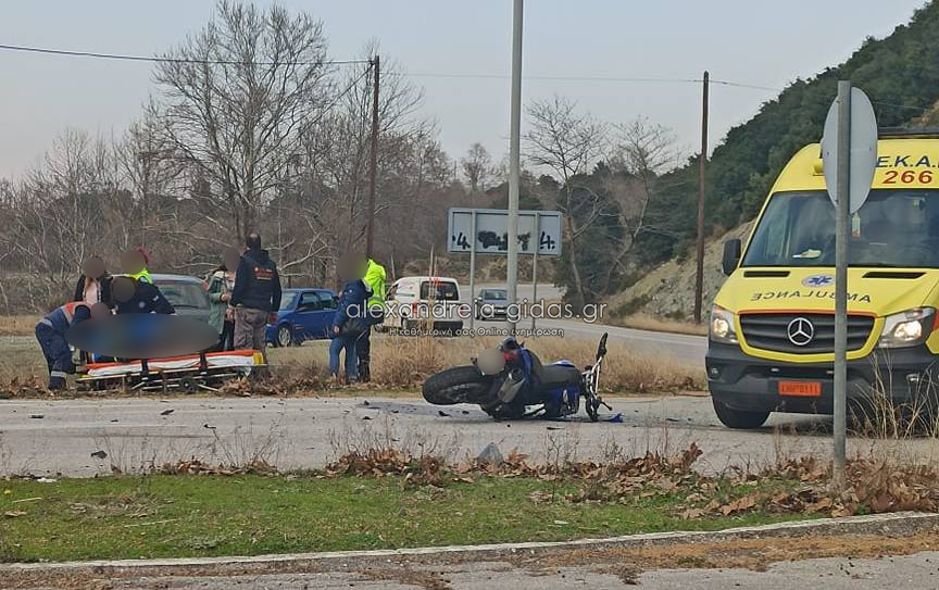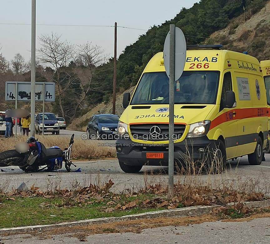 Σοβαρό τροχαίο έξω από τη Βέροια: Συγκρούστηκαν μηχανή με Ι.Χ.