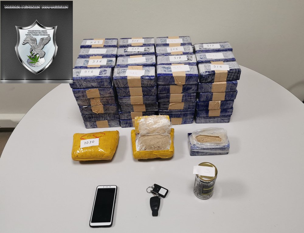 Κατασχέθηκαν περισσότερα από 50 κιλά ηρωίνης και συνελήφθη σημαντικό στέλεχος οργανωμένου διεθνούς κυκλώματος εμπορίας και διακίνησης ναρκωτικών που προέρχονται από έτερη χώρα.