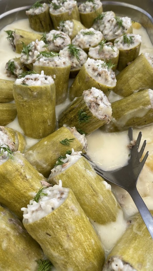 Λαχανοντολμάδες με κιμά και βελούδινη κρέμα λεμονιού