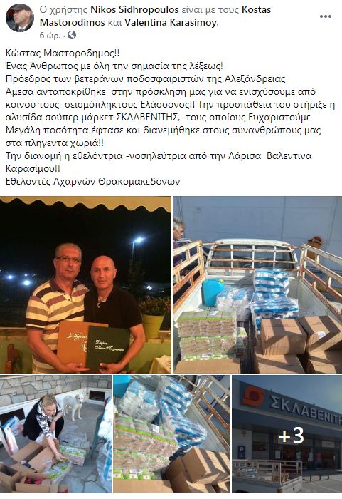 Άμεσα ανταποκρίθηκε στην πρόσκληση μας για να ενισχύσουμε από κοινού τους σεισμόπληκτους Ελάσσονος!! Την προσπάθεια του στήριξε η αλυσίδα σούπερ μάρκετ ΣΚΛΑΒΕΝΙΤΗΣ, τους οποίους Ευχαριστούμε