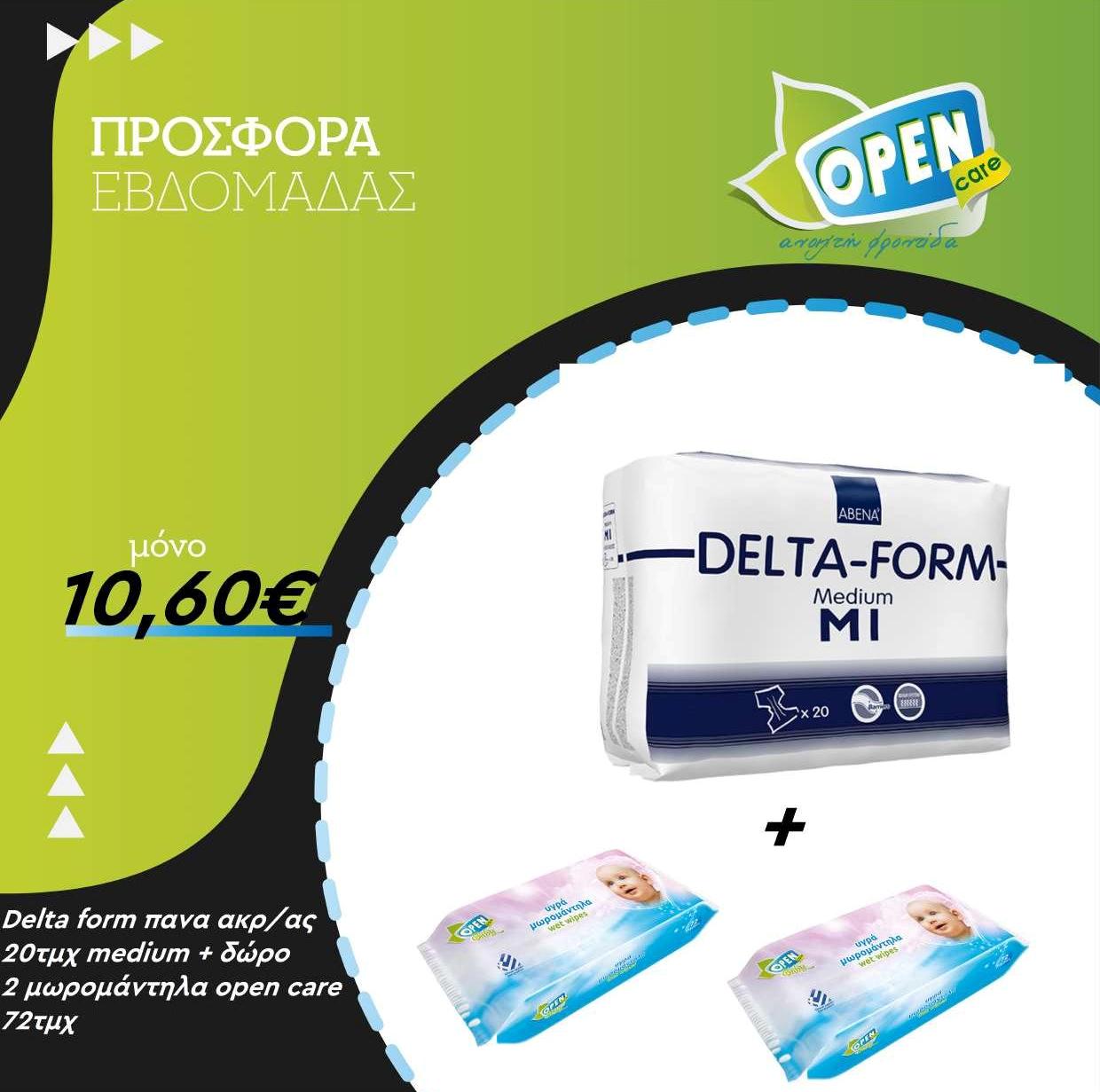Delta πάνα medium 20τμχ + 2 μωρομάντηλα 72τμχ μόνο 10,60€