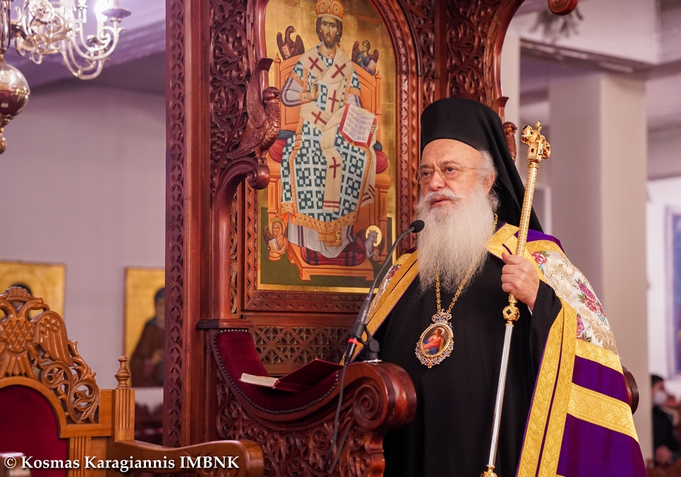 Καί εἴθε ὅλοι μας, βοηθούμενοι ἀπό τήν Ἐκκλησία μας, μέ τή συμμετοχή μας στά ἱερά Μυστήριά της καί μέ τόν προσωπικό μας ἀγώνα κατά τήν περίοδο αὐτή τῆς Ἁγίας καί Μεγάλης Τεσσαρακοστῆς, στήν ὁποία εἰσερχόμεθα ἀπό αὔριο, νά ἀξιωθοῦμε νά προσκυνήσουμε μέ εὐλάβεια τόν παθόντα δι’ ἡμᾶς καί Ἀναστάντα Κύριον καί νά συσταυρωθοῦμε καί νά συναναστηθοῦμε μαζί του.