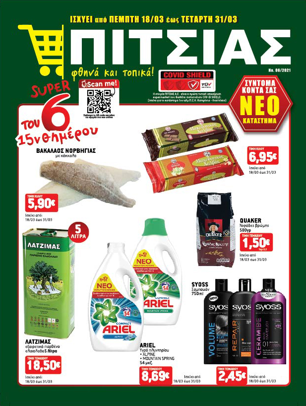 Από σήμερα Πέμπτη 18 Μαρτίου 2021 ξεκινούν οι ολοκαίνουριες προσφορές του σούπερ μάρκετ με νέο φυλλάδιο.