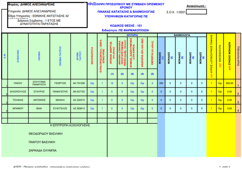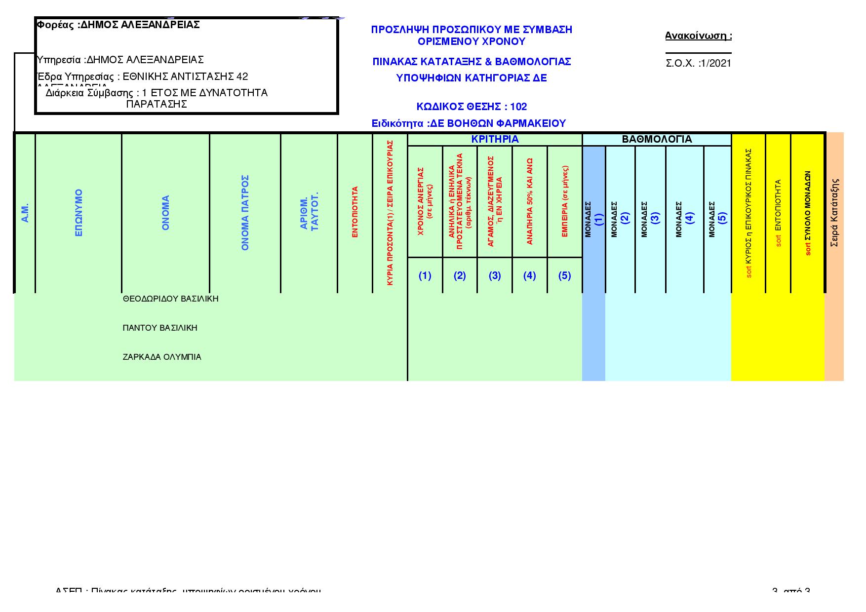 Τα αποτελέσματα της προκήρυξης ΣΟΧ 1/2021 για την πρόσληψη δύο ατόμων με σύμβαση εργασίας ιδιωτικού δικαίου ορισμένου χρόνου των παρακάτω ειδικοτήτων: