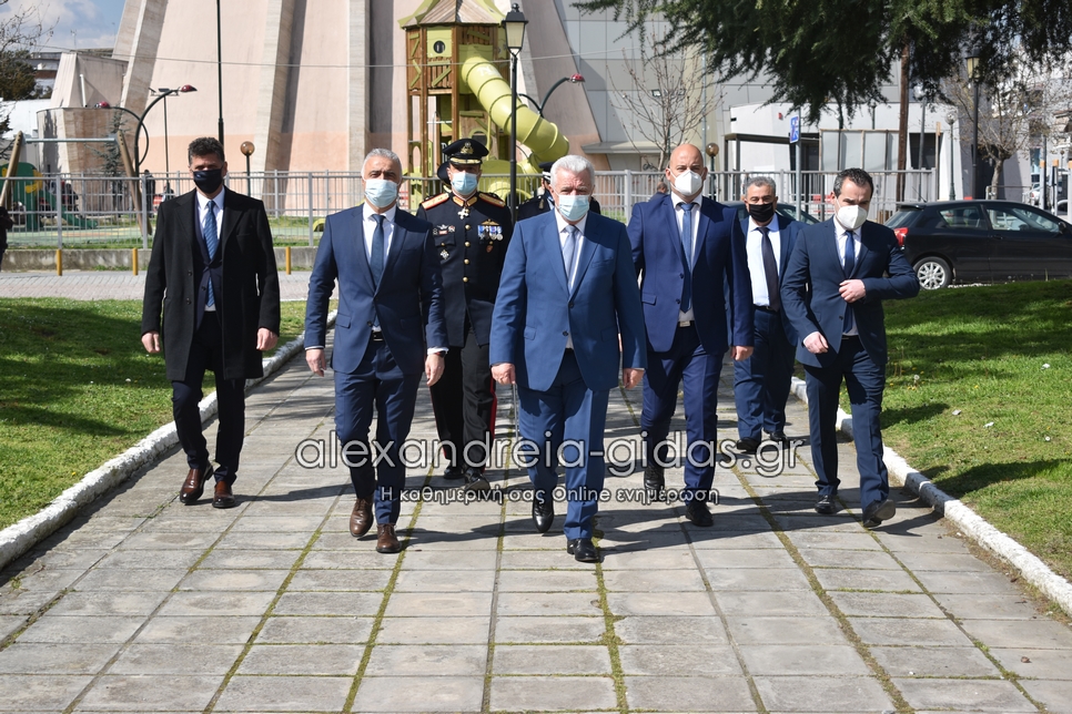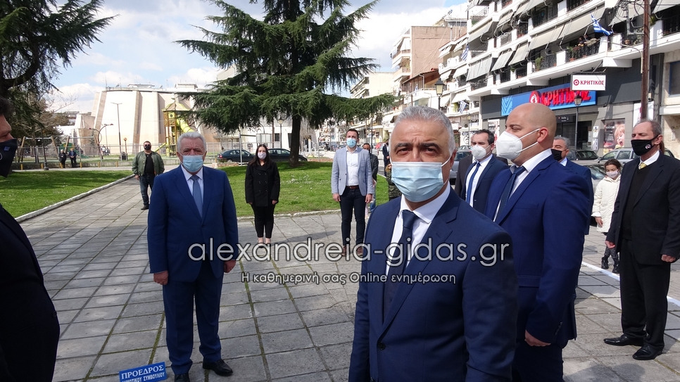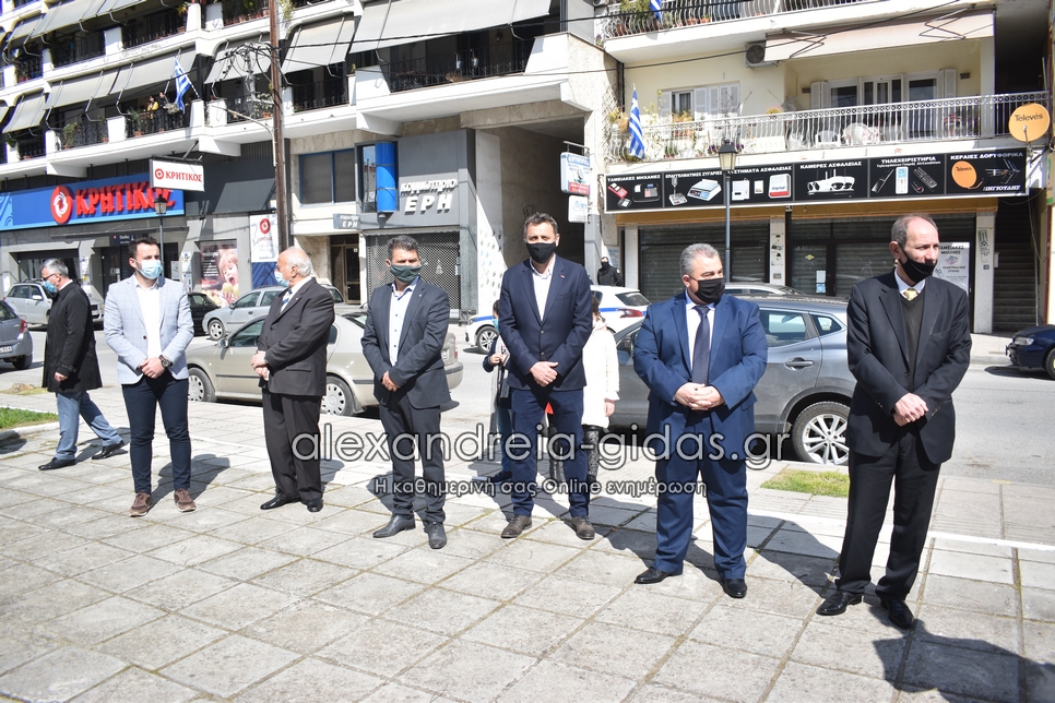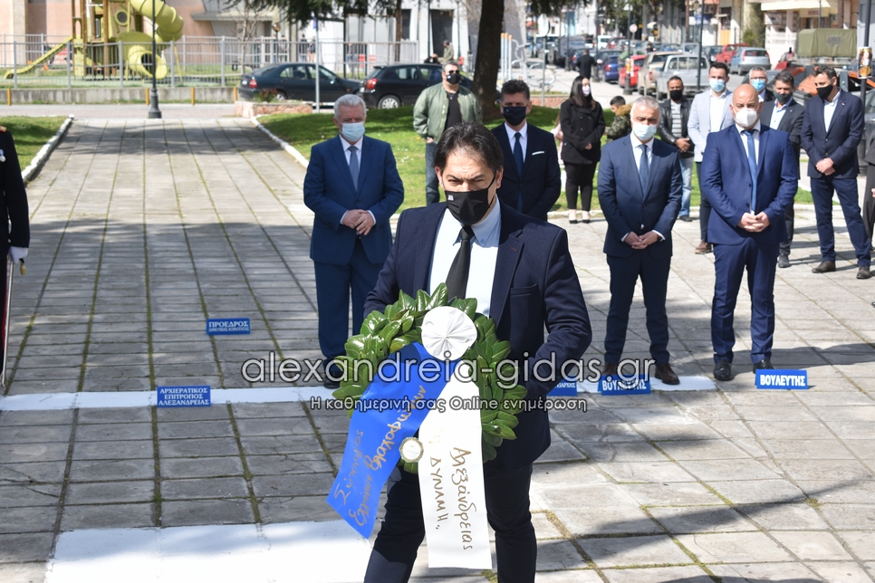 Χωρίς επιμνημόσυνη δέηση λόγων των μέτρων, πραγματοποιήθηκε η κατάθεση στεφάνων στο Ηρώο της Αλεξάνδρειας για την Εθνική Επέτειο της 25ης Μαρτίου.