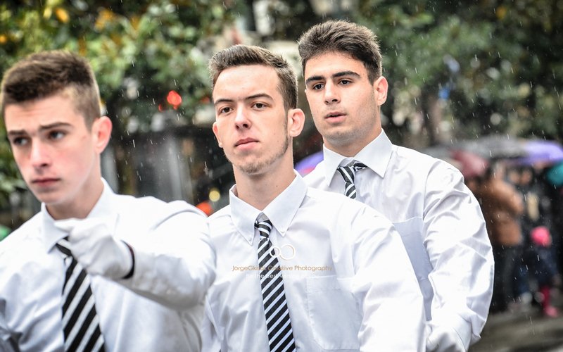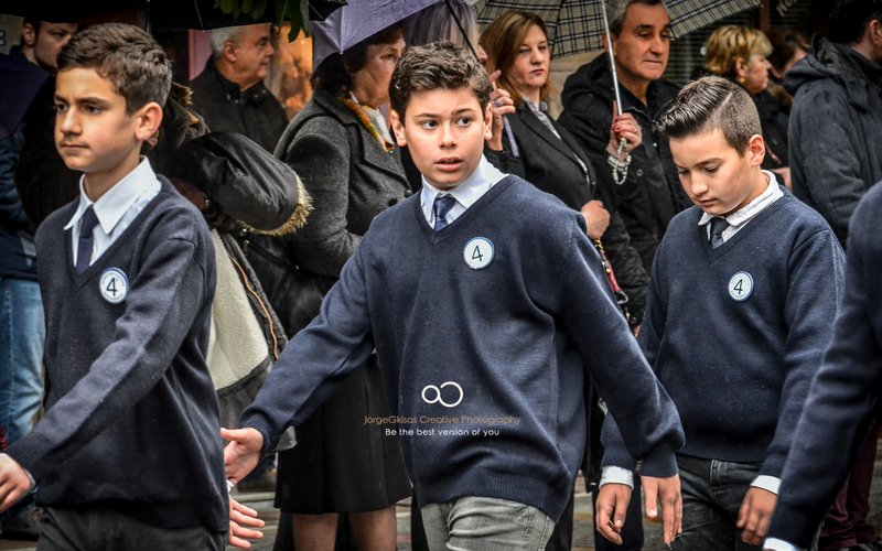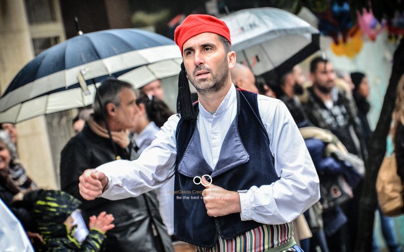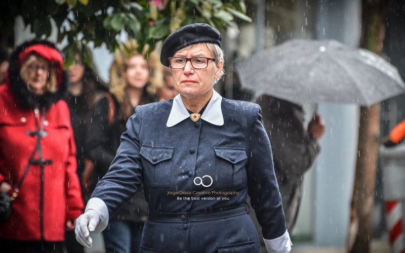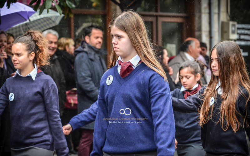 Ο καιρός τότε ήταν βροχερός και όσος κόσμος βρέθηκε στη Βετσοπούλου παρακολούθησε την παρέλαση με ομπρέλες.