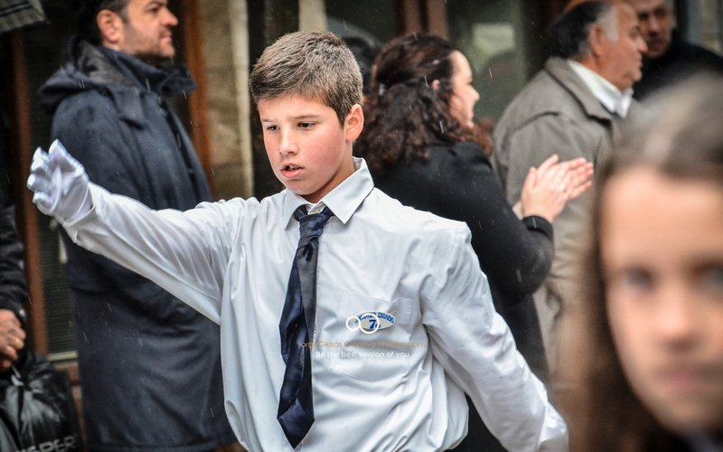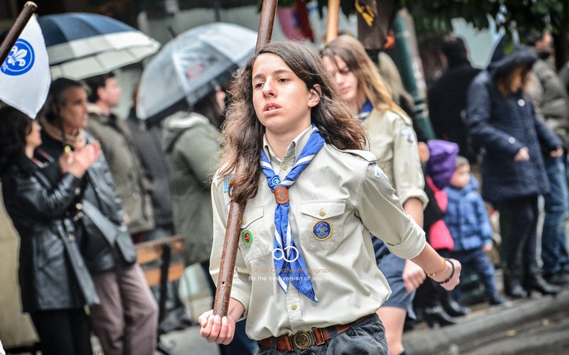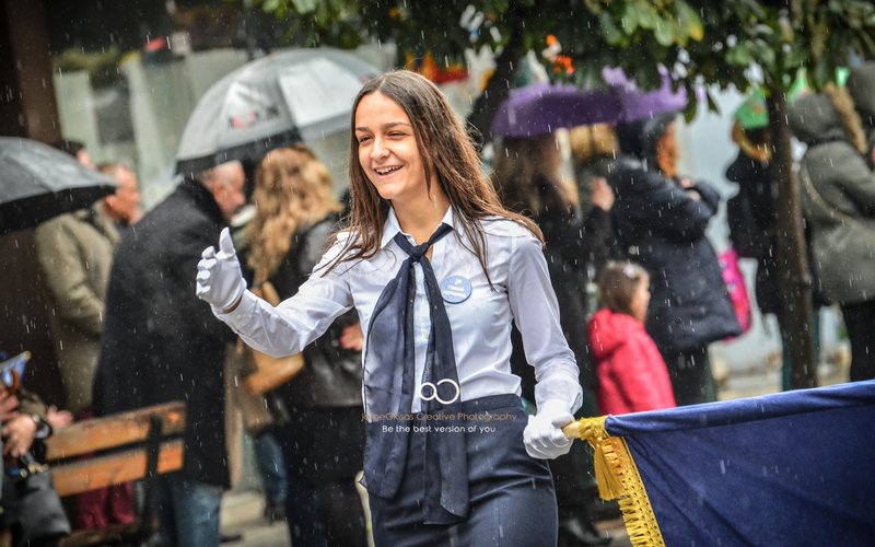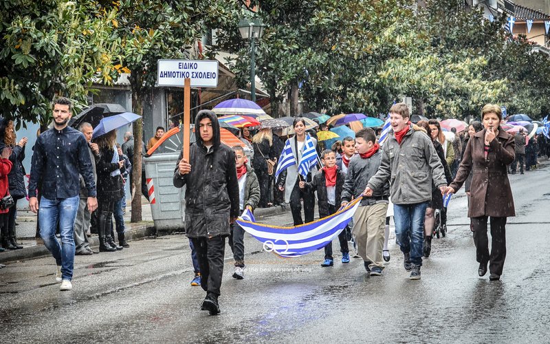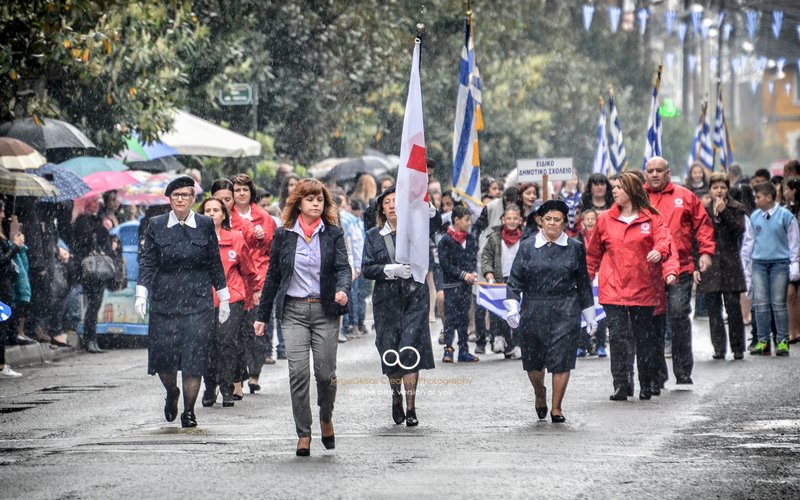 Ο καιρός τότε ήταν βροχερός και όσος κόσμος βρέθηκε στη Βετσοπούλου παρακολούθησε την παρέλαση με ομπρέλες.
