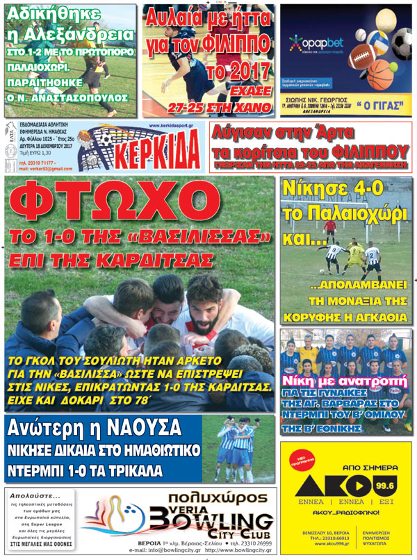 Κυκλοφορεί το νέο φύλλο της μοναδικής αθλητικής εφημερίδας του νομού Ημαθίας, της ΚΕΡΚΙΔΑΣ.