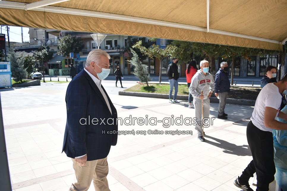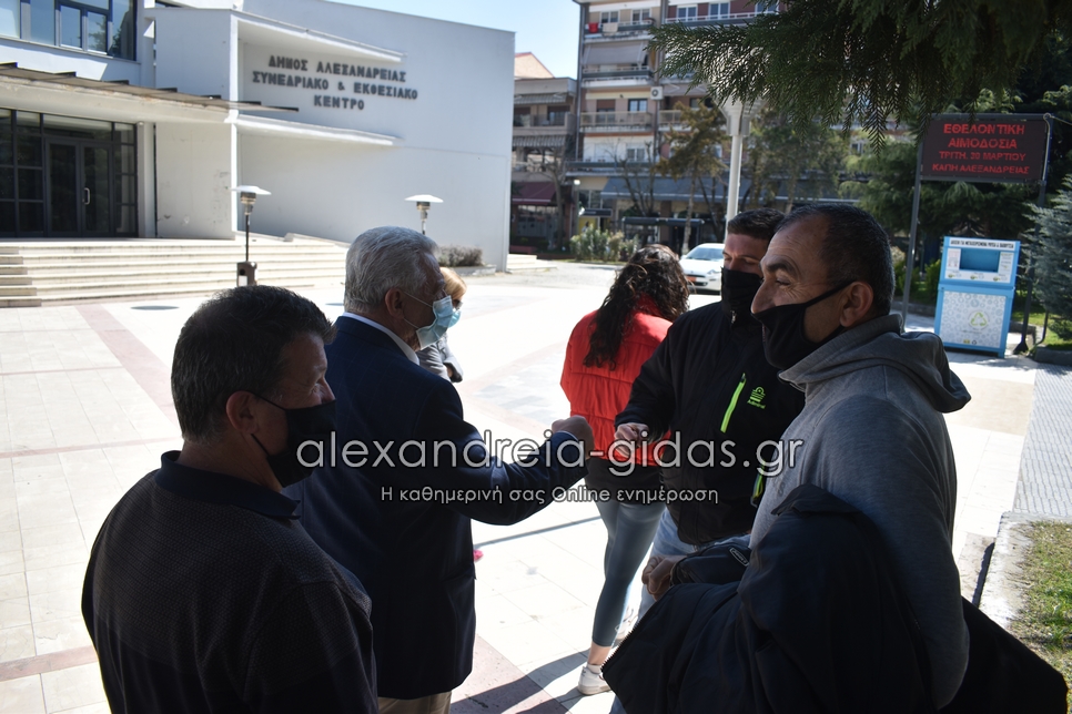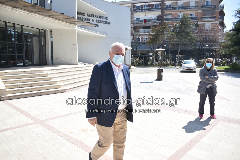 Μπροστά στο Πνευματικό Κέντρο Αλεξάνδρειας βρέθηκε το μεσημέρι της Πέμπτης 26 Μαρτίου 2021 ο δήμαρχος Αλεξάνδρειας Παναγιώτης Γκυρίνης.