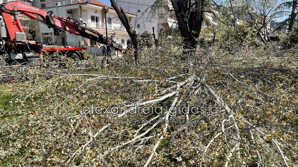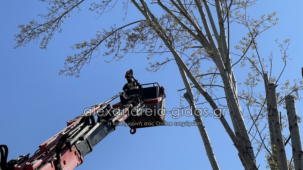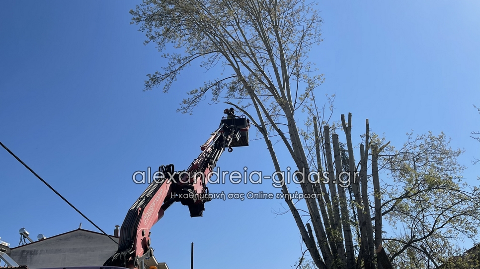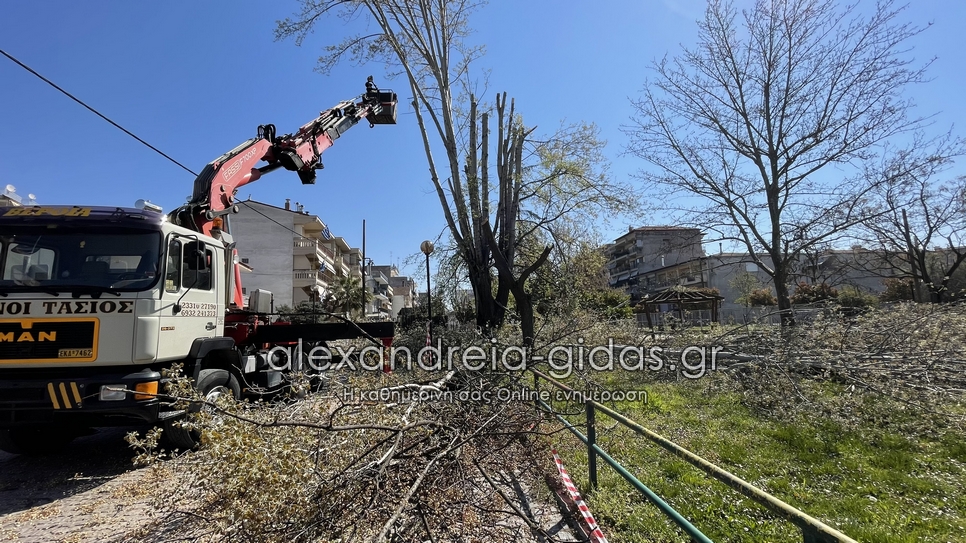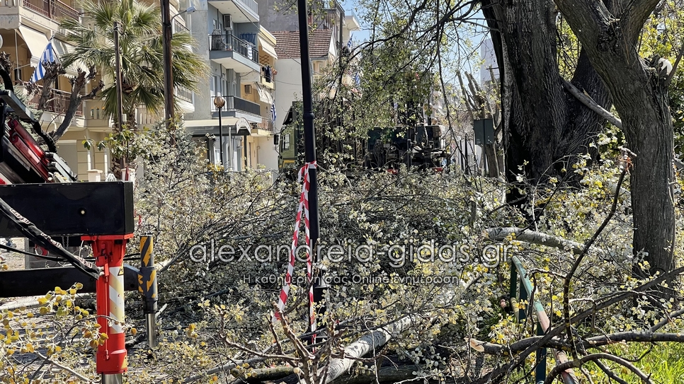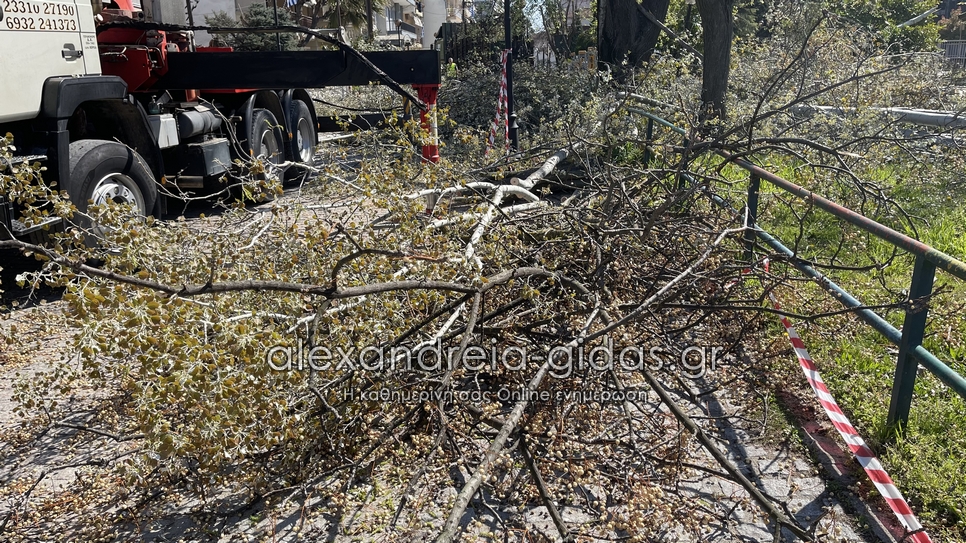 Κλάδεμα και κοπή επικίνδυνων δέντρων το πρωί στην Αλεξάνδρεια