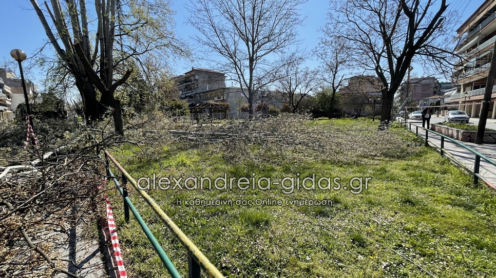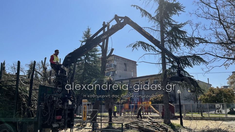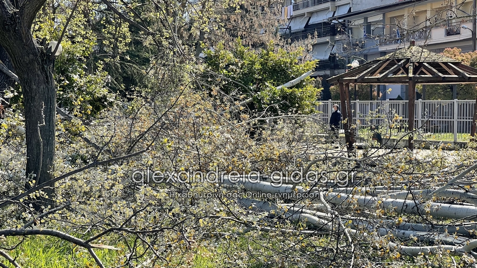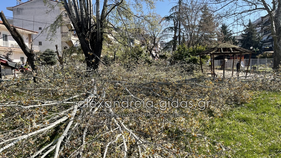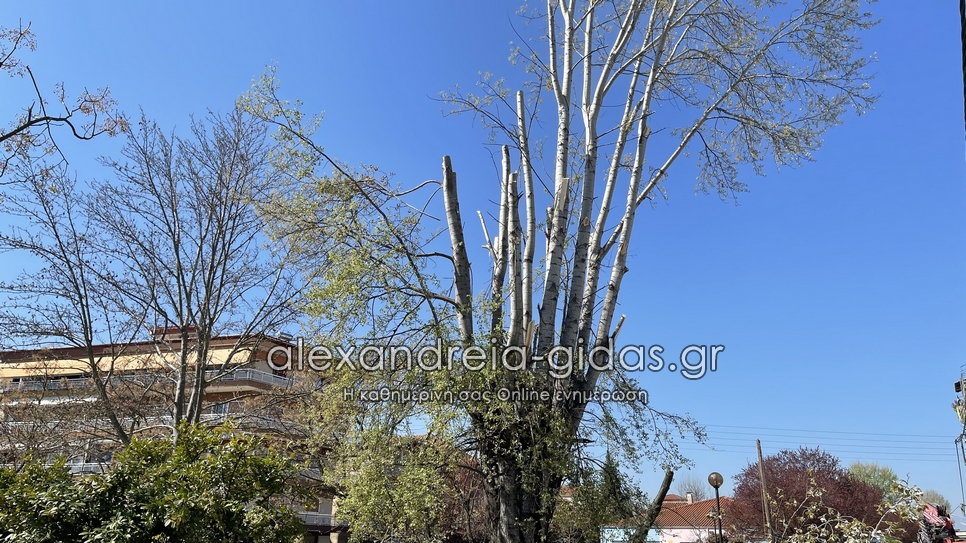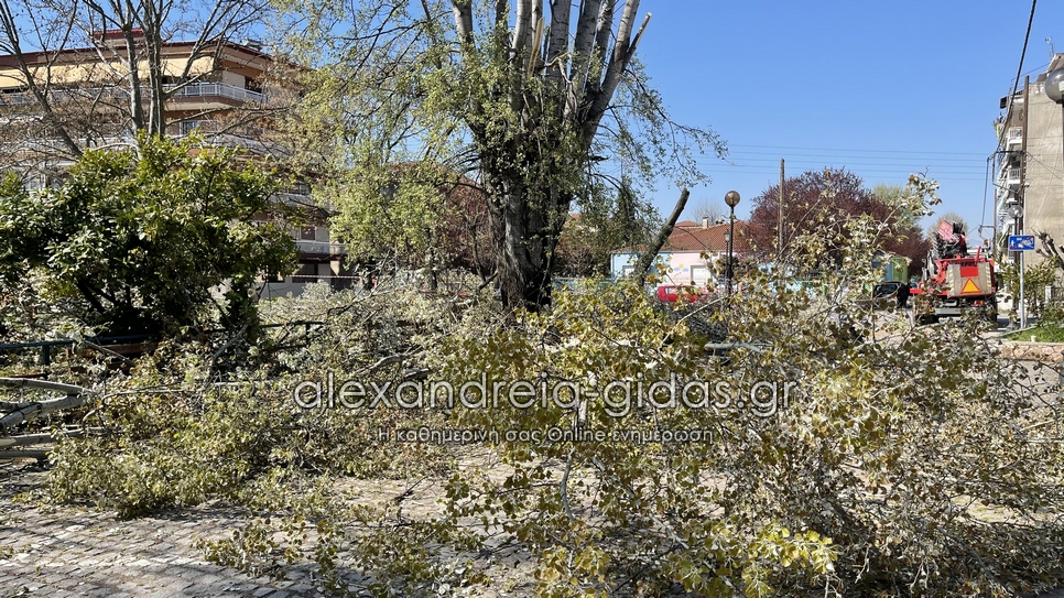Κλάδεμα και κοπή επικίνδυνων δέντρων το πρωί στην Αλεξάνδρεια