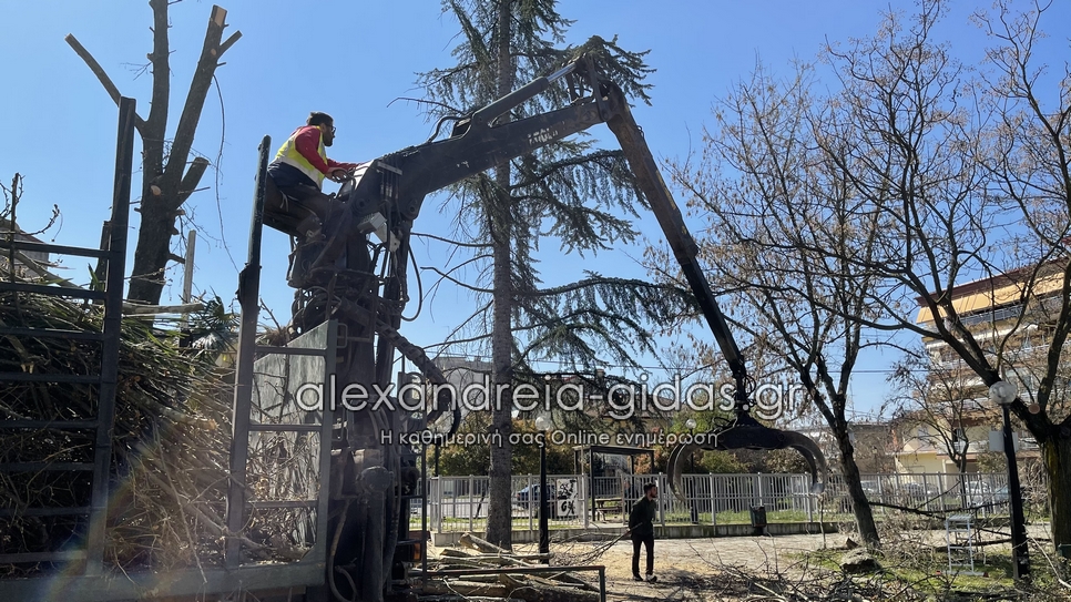 Σε κλάδεμα και κοπή επικίνδυνων δέντρων προχώρησε το πρωί του Σαββάτου 27 Μαρτίου 2021 ο δήμος Αλεξάνδρειας.