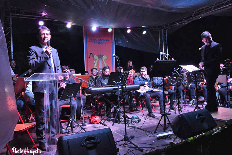Το χριστουγεννιάτικο δέντρο φωτίστηκε υπό τους ήχους της Φιλαρμονικής Αιγινίου, το Μουσικό Σχήμα ¨ΠΑΡΑ ΤΡΙΗΧΑ¨ , το μουσικό σχήμα με τους Ευθύμη, Θανάση και Βάλια και την ψαλμωδία του κ. Κορνελάκη Μανώλη που έψαλε το «Χριστός γεννάται».