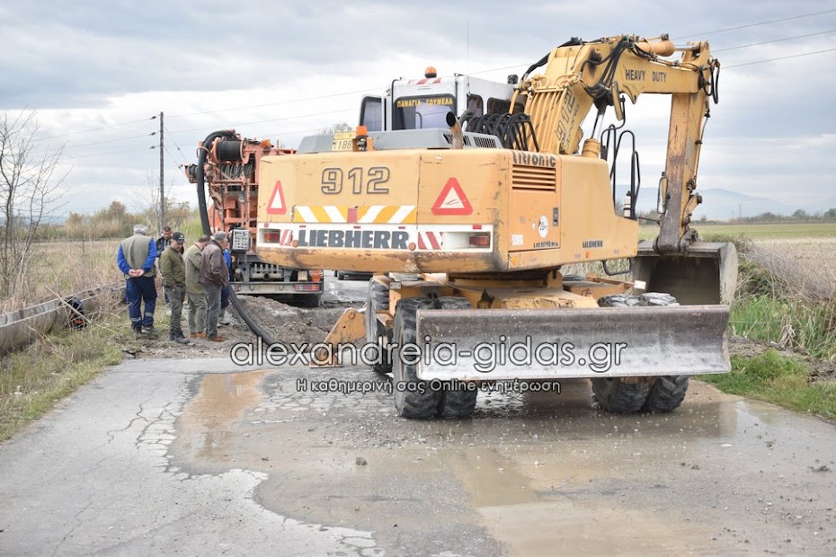 Στα σημεία της βλάβης βρίσκονται από χτες τα συνεργεία της ΔΕΥΑ Αλεξάνδρειας για να επιδιορθώσουν τη ζημιά που δημιουργήθηκε.