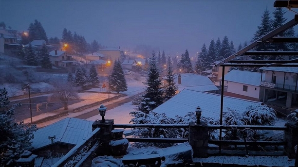 Για μια ακόμη φορά φέτος, οι κάτοικοι του χωριού είδαν την περιοχή να ντύνεται στα λευκά, με την χιονόπτωση να συνεχίζεται μέχρι και τώρα.