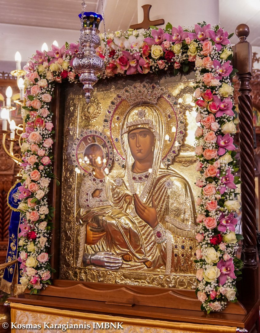 Ἀπόψε, λοιπόν, πού ὁλοκληρώνουμε μέ τήν Ἀκολουθία τοῦ Ἀκαθίστου Ὕμνου, τήν ὁποία ψάλαμε μέ συγκίνηση καί κατάνυξη ἐνώπιον τῆς ἱερᾶς της εἰκόνος, τῆς Τριχερούσης, τόν κύκλο τῶν Χαιρετισμῶν της κατά τή φετινή Μεγάλη Τεσσαρακοστή, ἄς τήν ἱκετεύσουμε ἀπό τά βάθη τῆς ψυχῆς μας νά μᾶς λυτρώσει ἀπό τήν ἐνεστῶσα συμφορά τῆς πανδημίας, νά μᾶς λυτρώσει ἀπό τόν πειρασμό πού μᾶς δοκιμάζει καί μᾶς συνθλίβει καί νά ἀνοίξει γιά χάρη μας τή θύρα τοῦ ἐλέους τοῦ Υἱοῦ της χαρίζοντάς μας τόσο τή σωτηρία ἀπό τήν πανδημία πού ἀπειλεῖ τή ζωή μας ἀλλά καί ὅλους τούς ἀδελφούς μας πού εἶναι ἀσθενεῖς, ὅσο καί ἀπό τήν ἁμαρτία πού ἀπειλεῖ τό αἰώνιο μέλλον μας, γιά νά τήν ὑμνοῦμε πάντοτε ψάλλοντας τό «Χαῖρε, Ἐδέμ, ἀνοίξασα τήν κεκλεισμένην, Ἁγνή». Ἀμήν.