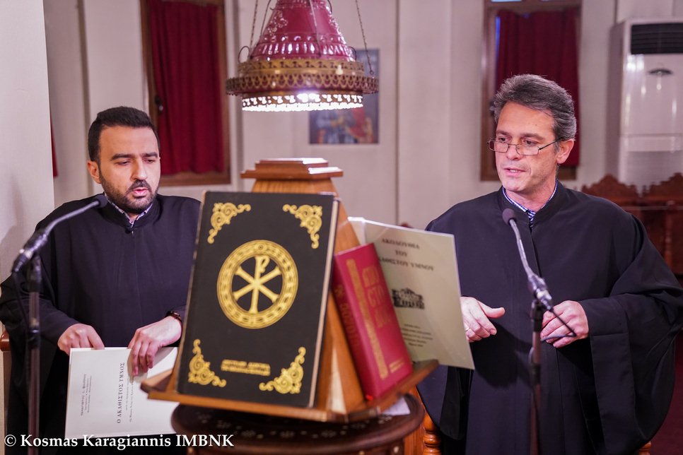Στην Ιερά Ακολουθία έψαλλαν ο Πρωτοψάλτης του Ιερού Προσκυνηματικού Ναού του Αγίου Αντωνίου Βεροίας κ. Ιορδάνης Κουτσιμανής και ο κ. Βασίλειος Μαυράγκανος.