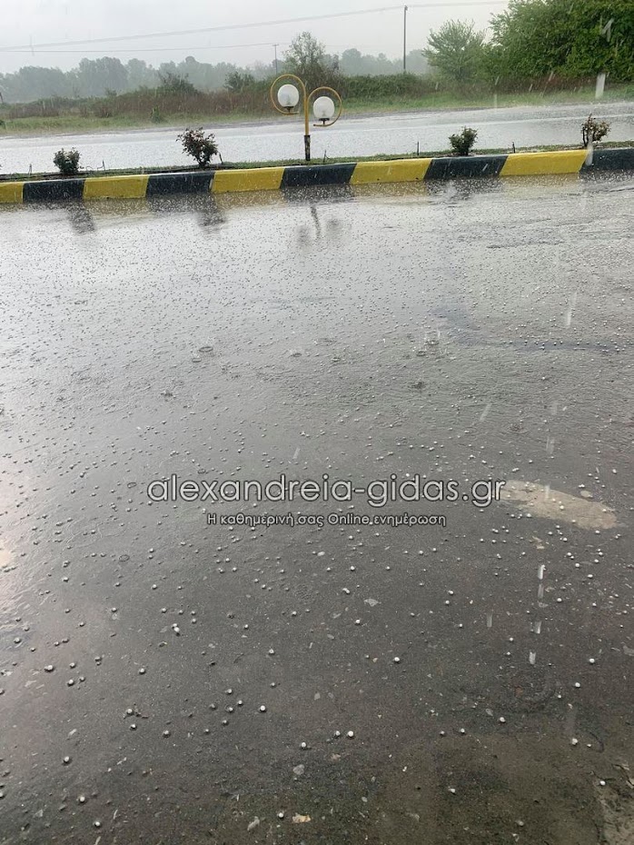 Μετά τις 12:45 σήμερα Δευτέρα 19 Απριλίου 2021 χαλάζι έπεσε στις περιοχές του δήμου Αλεξάνδρειας.