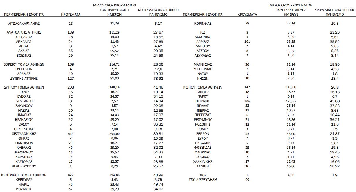 Με βάση τα επιβεβαιωμένα κρούσματα των τελευταίων 7 ημερών, 61 θεωρούνται σχετιζόμενα με ταξίδι από το εξωτερικό και 2.833 είναι σχετιζόμενα με ήδη γνωστό κρούσμα.