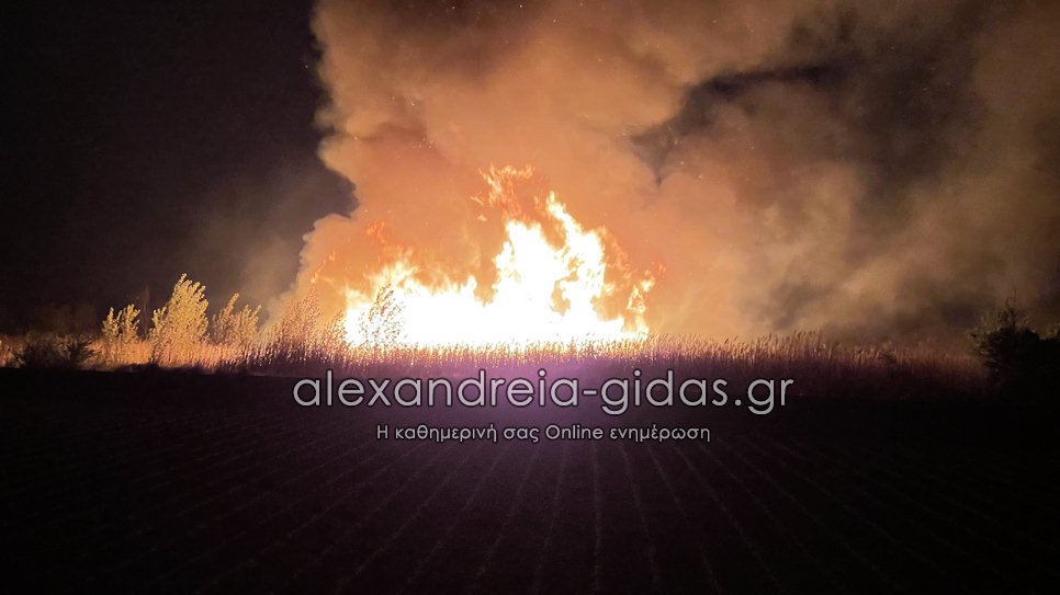 Μεγάλη φωτιά εκδηλώθηκε το βράδυ της Μεγάλης Δευτέρας 26 Απριλίου 2021 στον δήμο Αλεξάνδρειας.