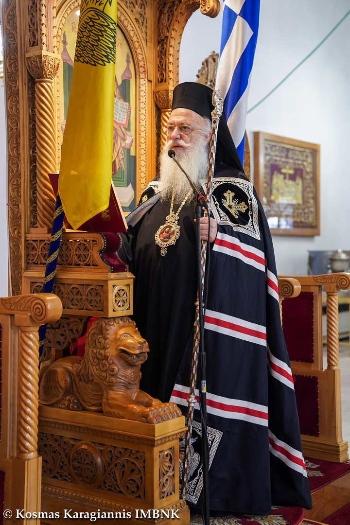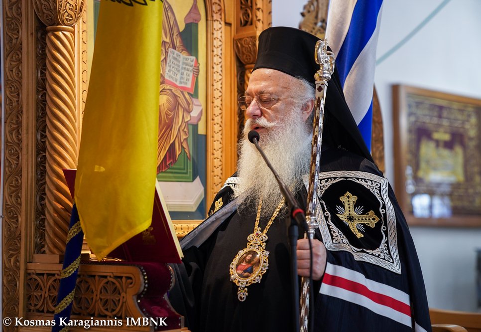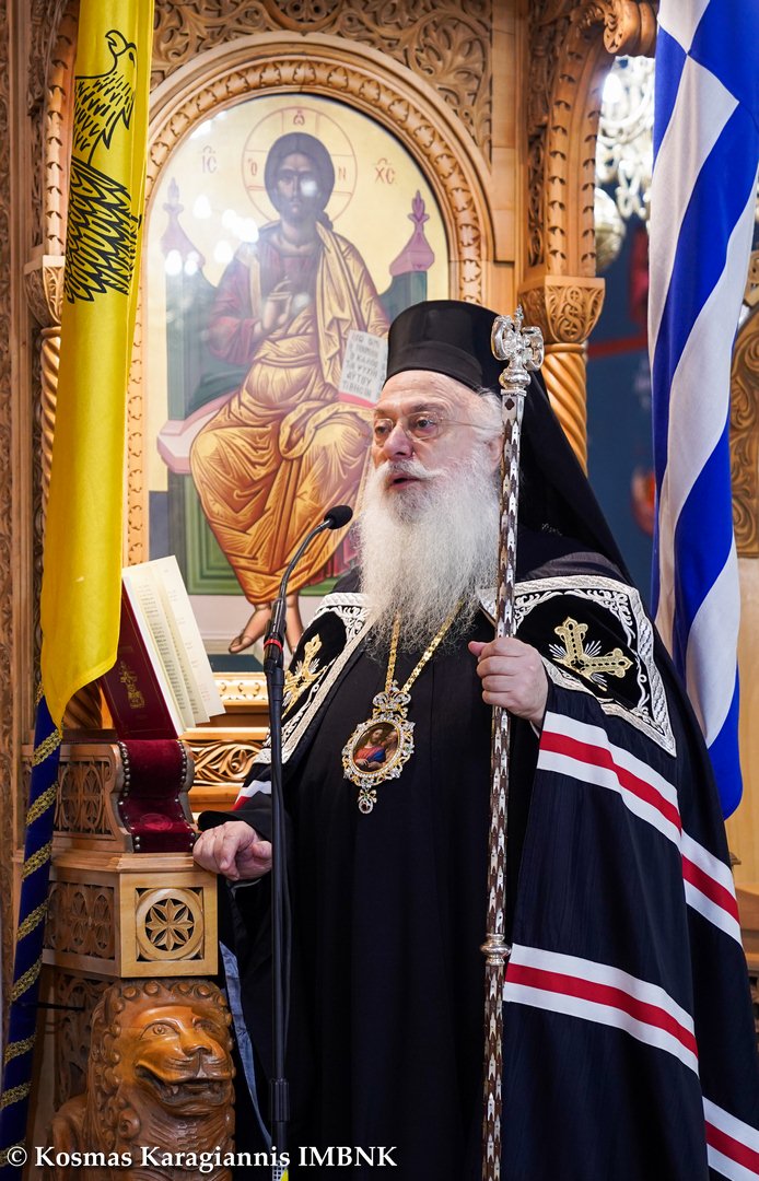 Ο Σεβασμιώτατος στην ομιλία του ανέφερε μεταξύ άλλων: «Ἡ τόν ἀχώρητον Θεόν ἐν γαστρί χωρήσασα καί χαράν τῷ κόσμῳ κυήσασα, σέ ὑμνοῦμεν, Παναγία Παρθένε».