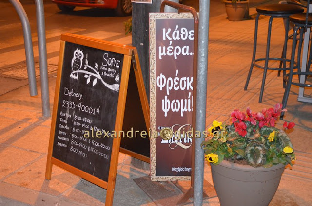 Το καφέ – μπουγάτσα “SOFIE Coffee, Bakery & Snacks” λειτουργεί απέναντι από το ΚΤΕΛ Αλεξάνδρειας στη γωνία της Ν. Πλαστήρα 19.