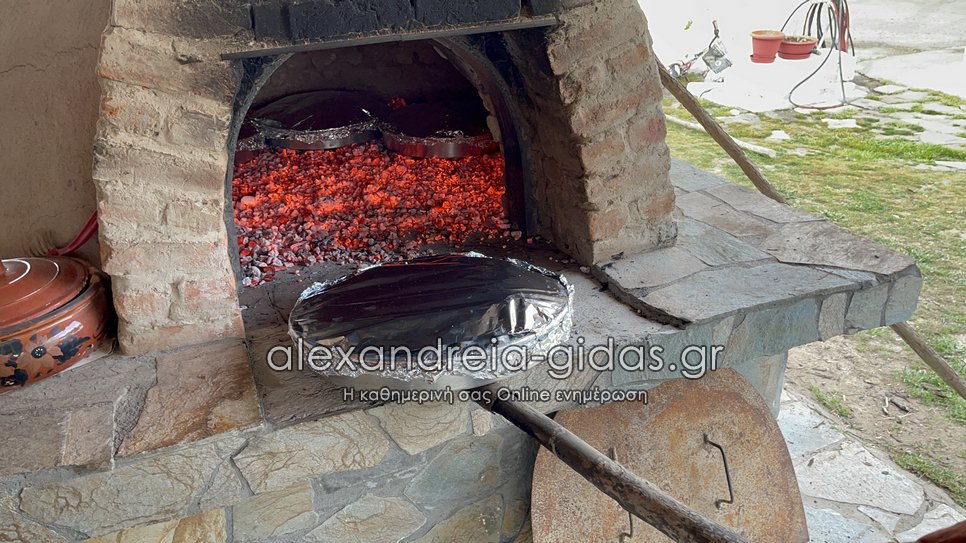 Το απόγευμα του Μεγάλου Σαββάτου, ο Νίκος, η οικογένεια και οι φίλοι του άναψαν τον παραδοσιακό ξυλόφουρνο.