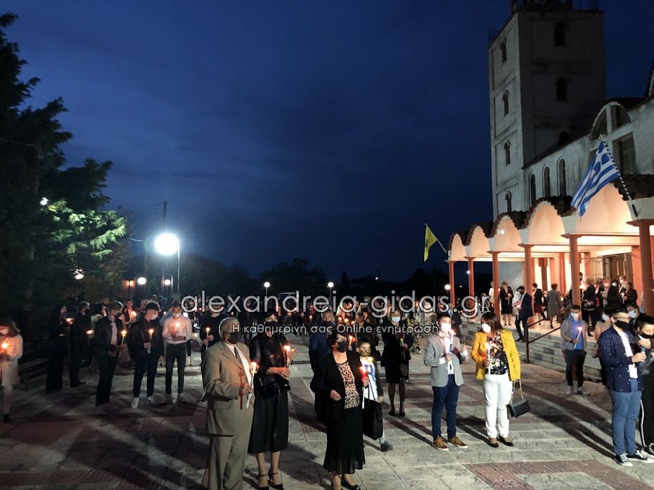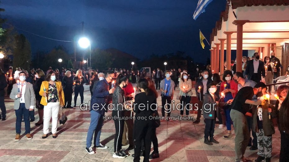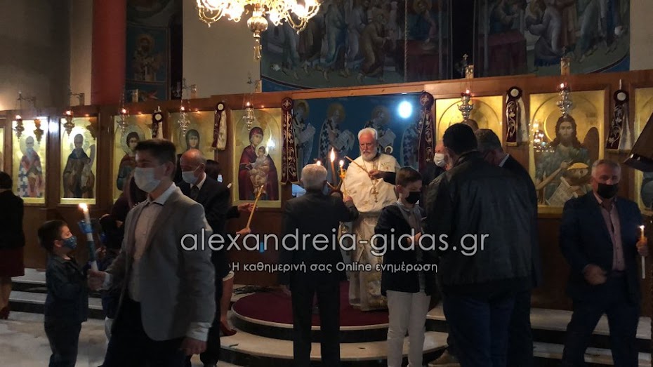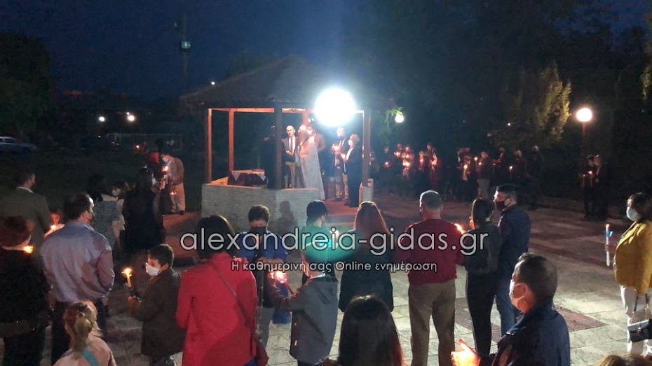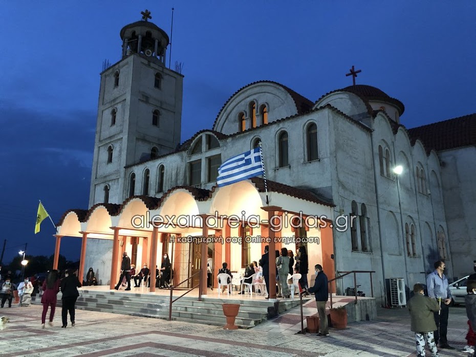 Με όλα τα προβλεπόμενα μέτρα στις 9 το βράδυ του Μεγάλου Σαββάτου 1 Μαΐου 2021 ακούστηκε στο “Χριστός Ανέστη” και στην Κορυφή του δήμου Αλεξάνδρειας.