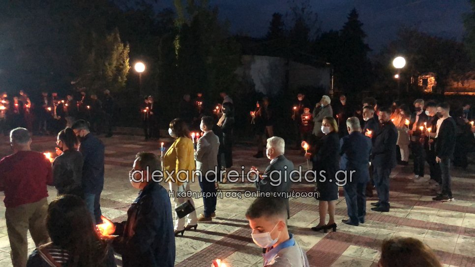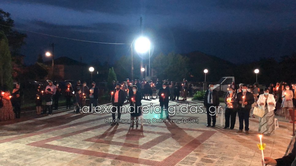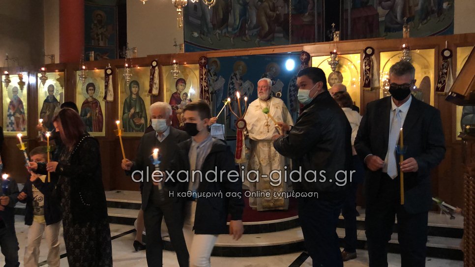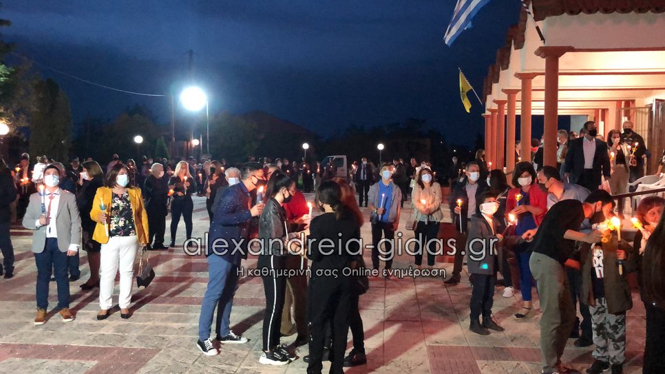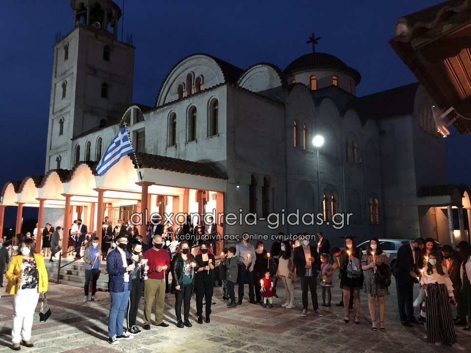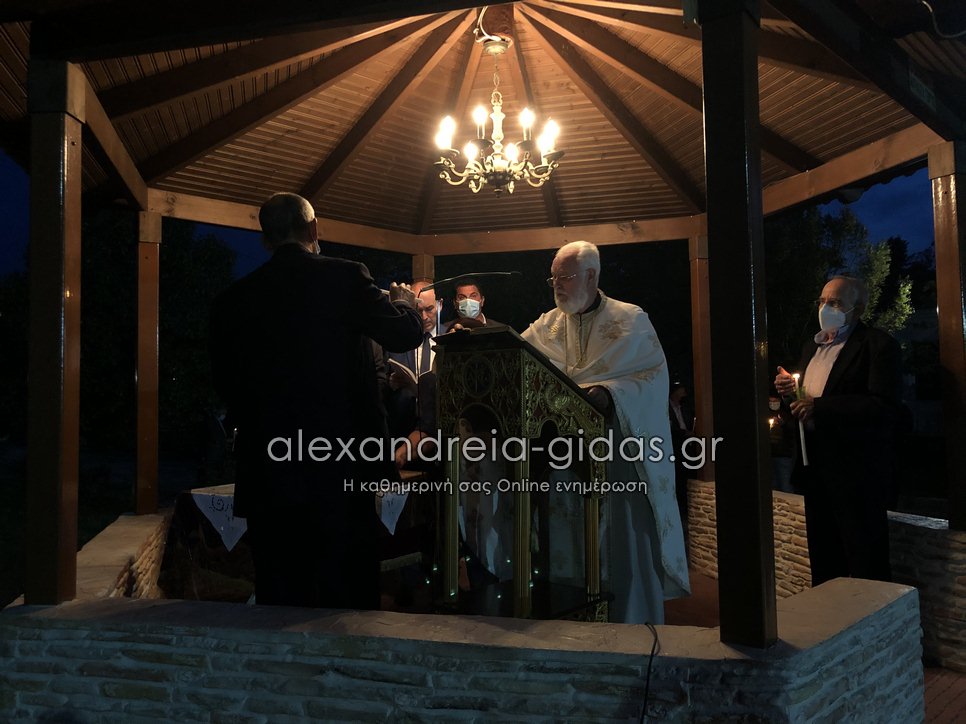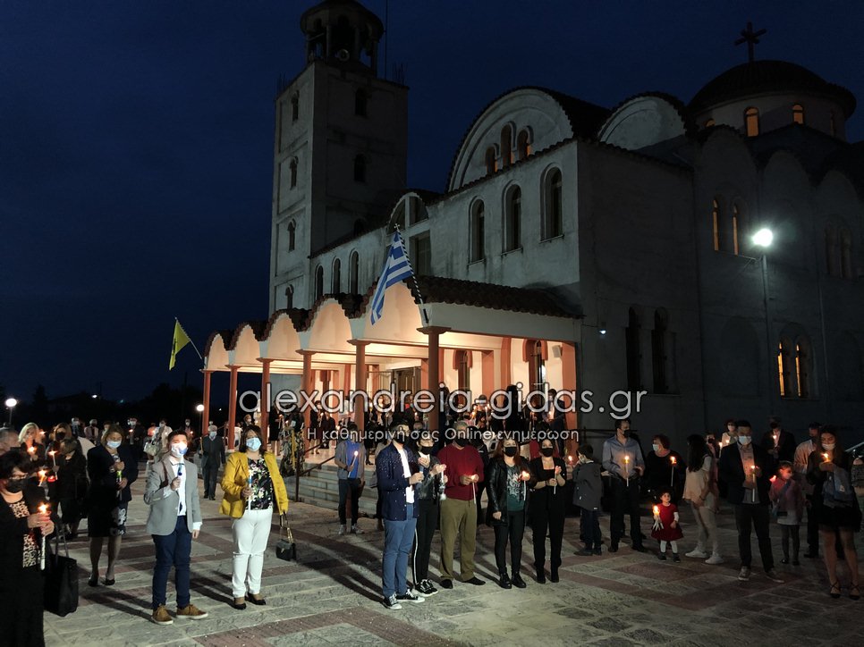 Με όλα τα προβλεπόμενα μέτρα στις 9 το βράδυ του Μεγάλου Σαββάτου 1 Μαΐου 2021 ακούστηκε στο “Χριστός Ανέστη” και στην Κορυφή του δήμου Αλεξάνδρειας.