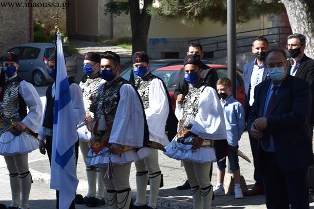 Το παρών στις εκδηλώσεις έδωσε και η πρόεδρος της Επιτροπής «Ελλάδα 2021», Γιάννας Αγγελοπούλου – Δασκαλάκη, η οποία έφτασε το πρωί στη Νάουσα, ειδικά για τις επετειακές εκδηλώσεις, με ιδιωτικό ελικόπτερο το οποίο προσγειώθηκε στη Σχολή Αστυφυλάκων της Νάουσας.