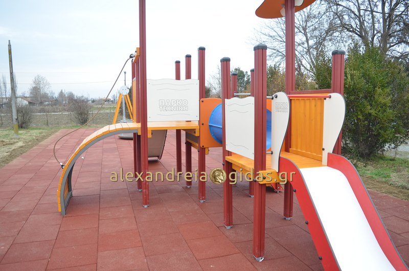 Συνεχίζονται με γοργούς ρυθμούς οι εργασίες στην ολοκαίνουρια παιδική χαρά στην Κορυφή του δήμου Αλεξάνδρειας.