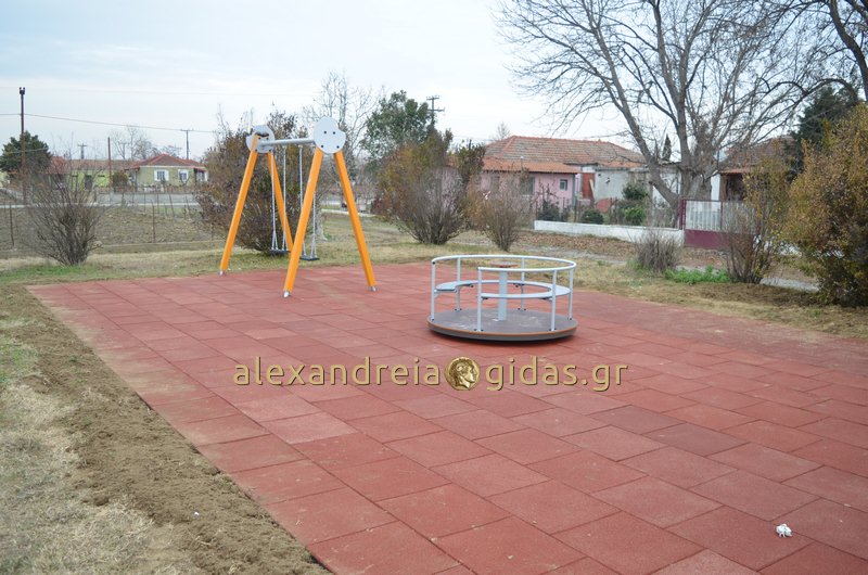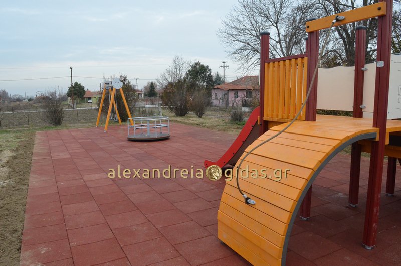 Συνεχίζονται με γοργούς ρυθμούς οι εργασίες στην ολοκαίνουρια παιδική χαρά στην Κορυφή του δήμου Αλεξάνδρειας.