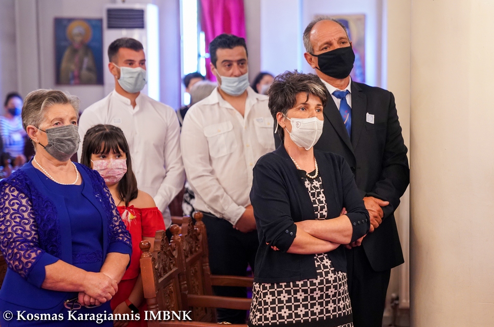 Στην Ακολουθία έψαλλε Βυζαντινός Χορός υπό την διεύθυνση του Πρωτοψάλτου κ. Ιωάννου Χασανίδη, ενώ παρευρέθηκε ο Υφυπουργός Οικονομικών κ. Απόστολος Βεσυρόπουλος και πλήθος ευσεβών πιστών, τηρουμένων των προβλεπόμενων μέτρων για την προστασία της δημόσιας υγείας.