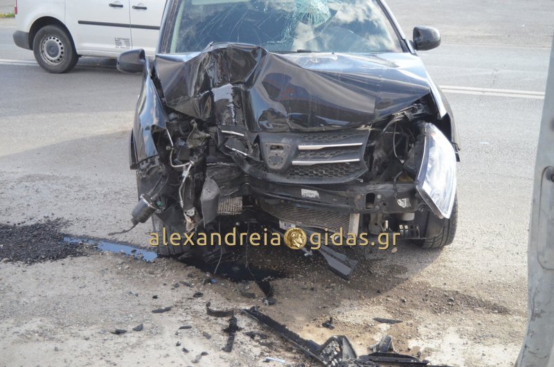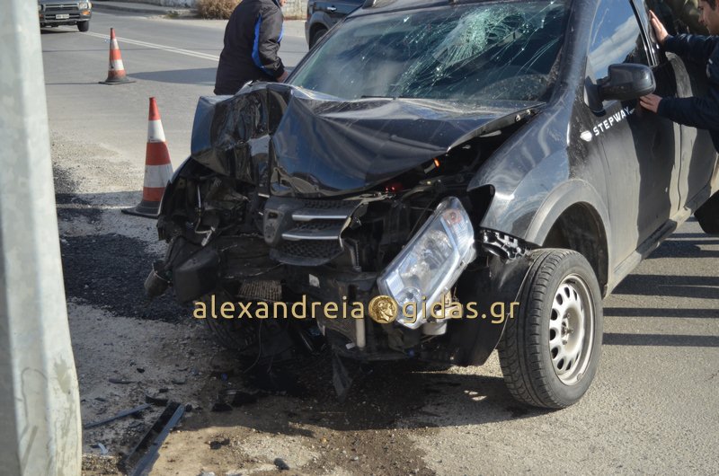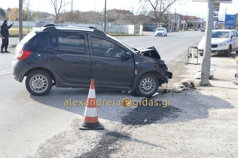 Τροχαίο ατύχημα σημειώθηκε το πρωί του Σαββάτου 23 Δεκεμβρίου 2017 στην Αλεξάνδρεια, στο ύψος του δημοτικού σταδίου της πόλης μας.