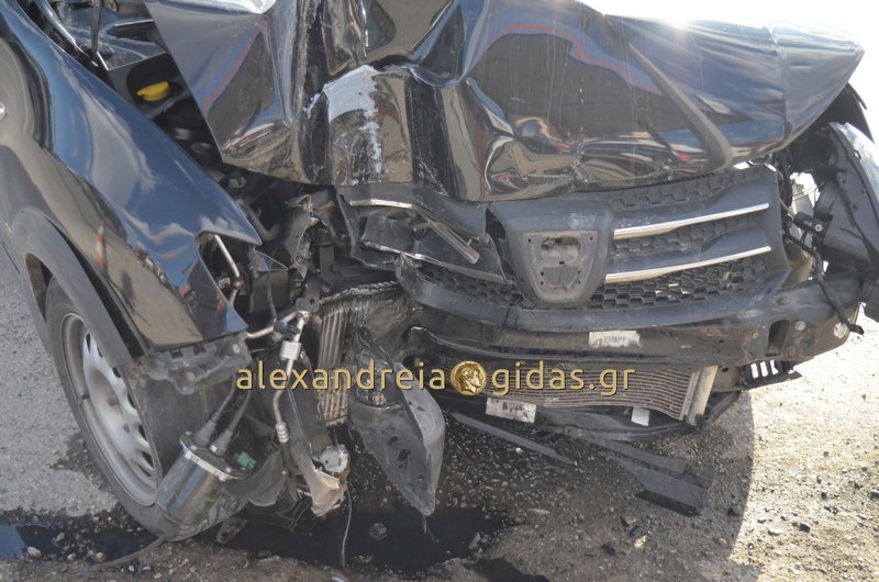 Ο οδηγός μεταφέρθηκε με ασθενοφόρο στο Κέντρο Υγείας Αλεξάνδρειας έχοντας χτυπήσει στο παρμπρίζ του αυτοκινήτου με τραυματισμό στο κεφάλι.