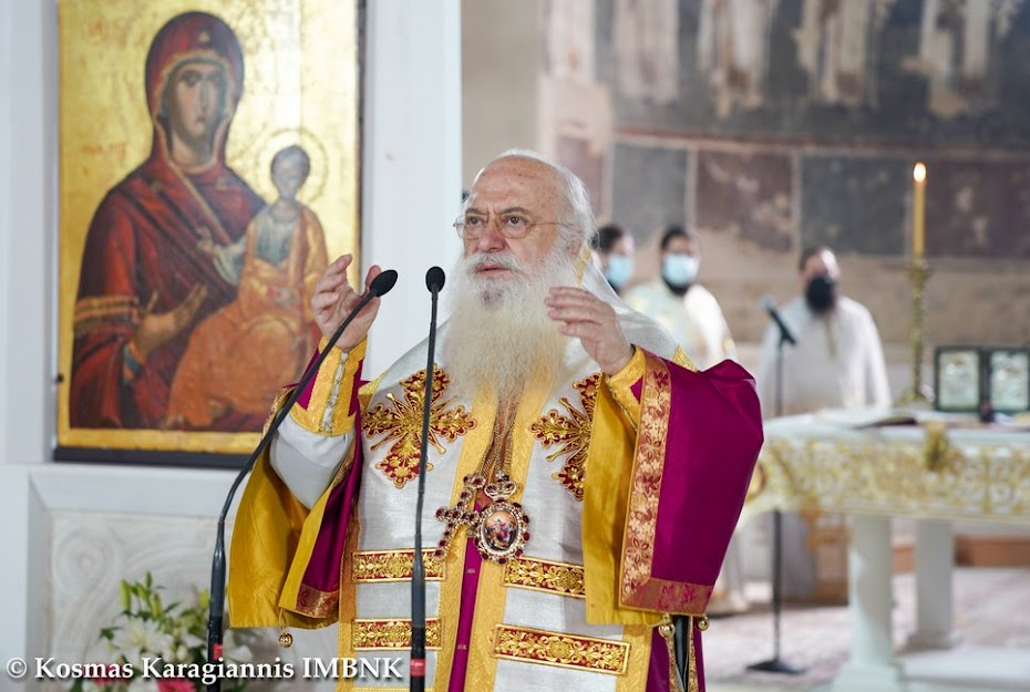 Γι᾽ αὐτό καί σήμερα, πού ἡ Ἐκκλη­σία μας ἑορτάζει τήν ἱερά μνήμη του, τόν τιμοῦμε ἐδῶ στήν παλαιά Μητρόπολη, ὅπου καί ἐκεῖνος ἱερουρ­γοῦσε προσφέροντας τήν ἀναίμακτο θυσία, ἀλλά τελικά καί τή θυσία τοῦ ἴδιου τοῦ ἑαυτοῦ του γιά χάρη τοῦ Χριστοῦ.
